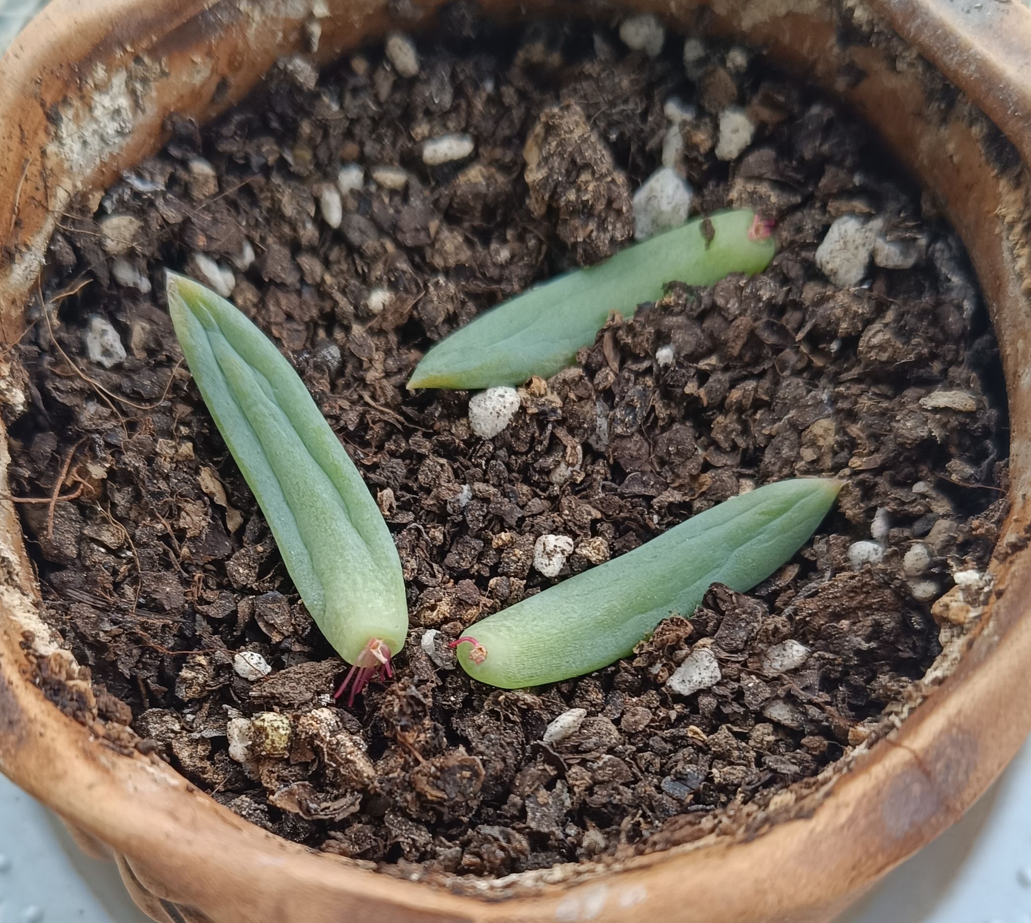 其实还热的时候就长芽了,前一阵子一直下雨很凉快就种了(*゚ー゚)