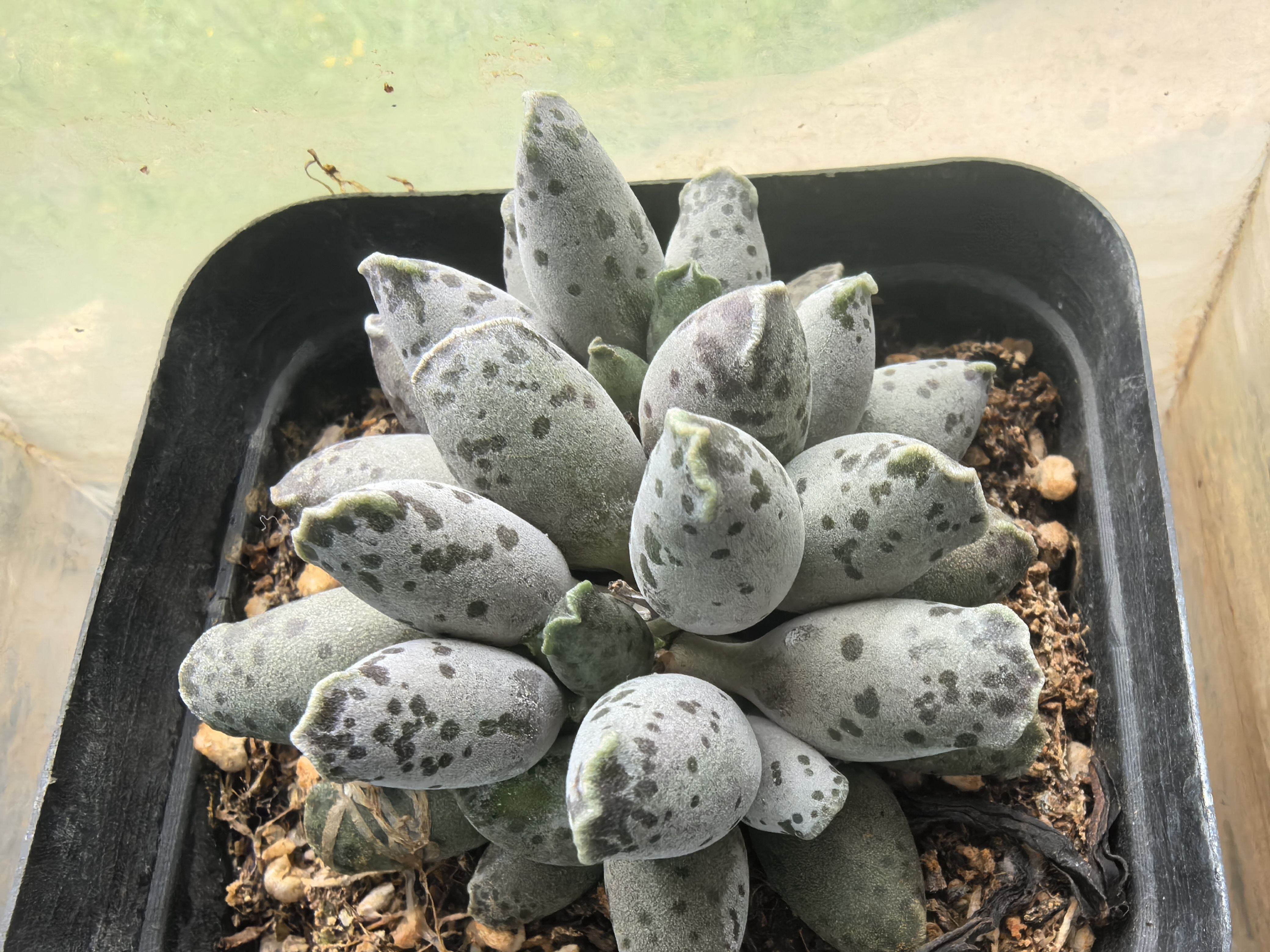 这东西真耐活,po忘记把它带走,离开学校五个月才回来,当时看已经干瘪得只剩一层皮了,多倒了点水又胖胖的了( ゚∀。)