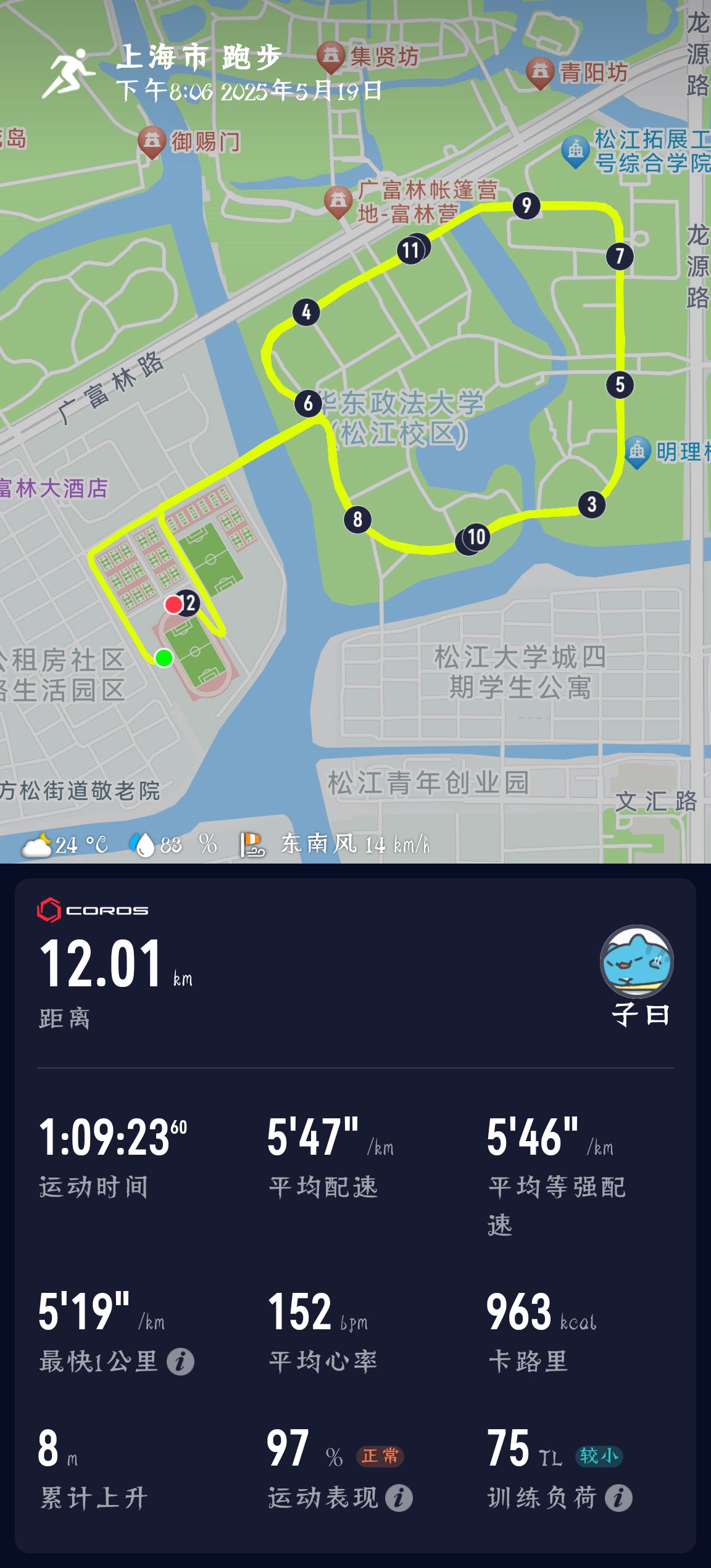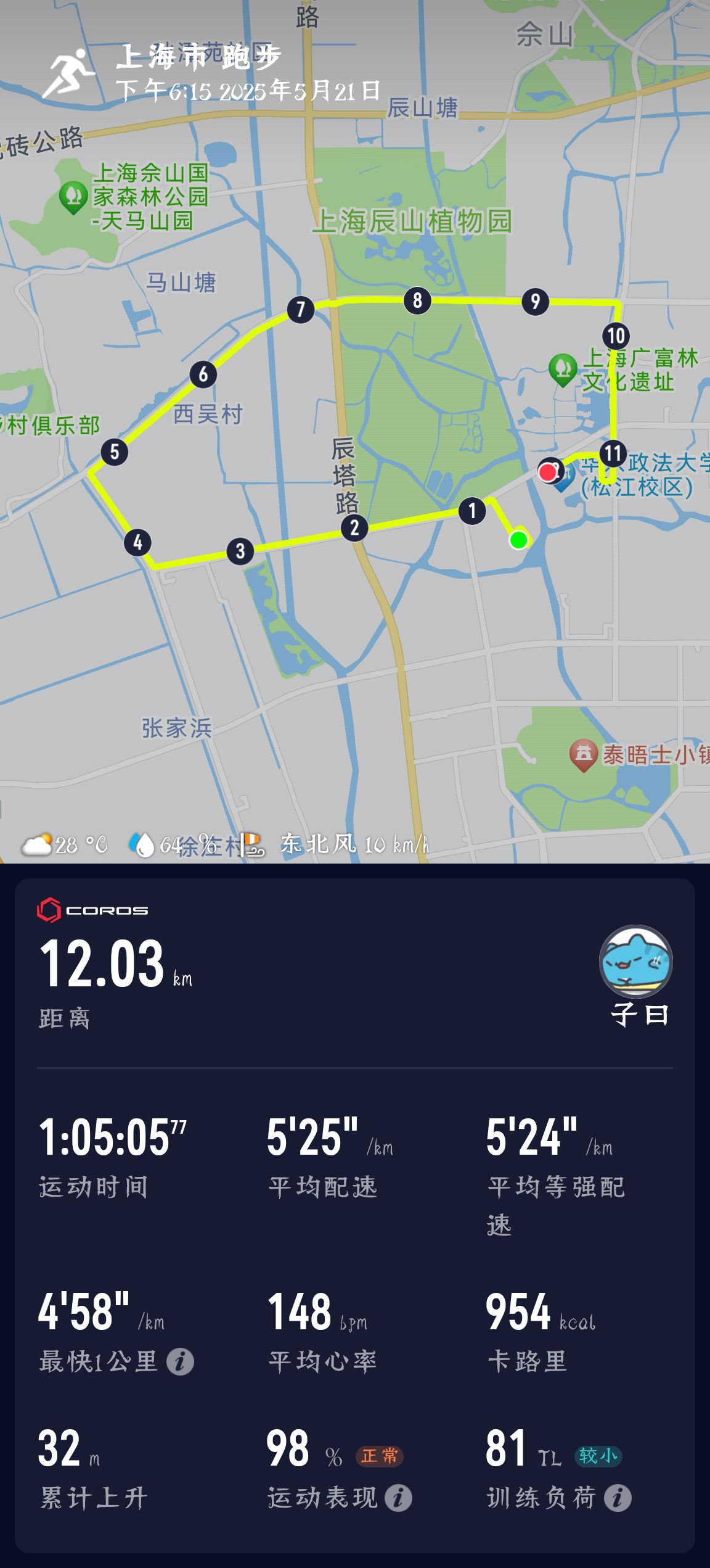 虽然今天还是有点咳嗽,跑了个12km慢摇有氧,真的非常慢