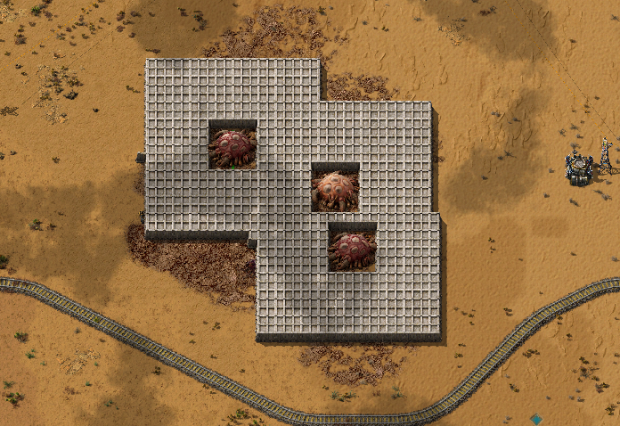 所以要趁炮塔把虫子全都弄死的间歇中施工好,可以上蓝图让机器人帮你铺