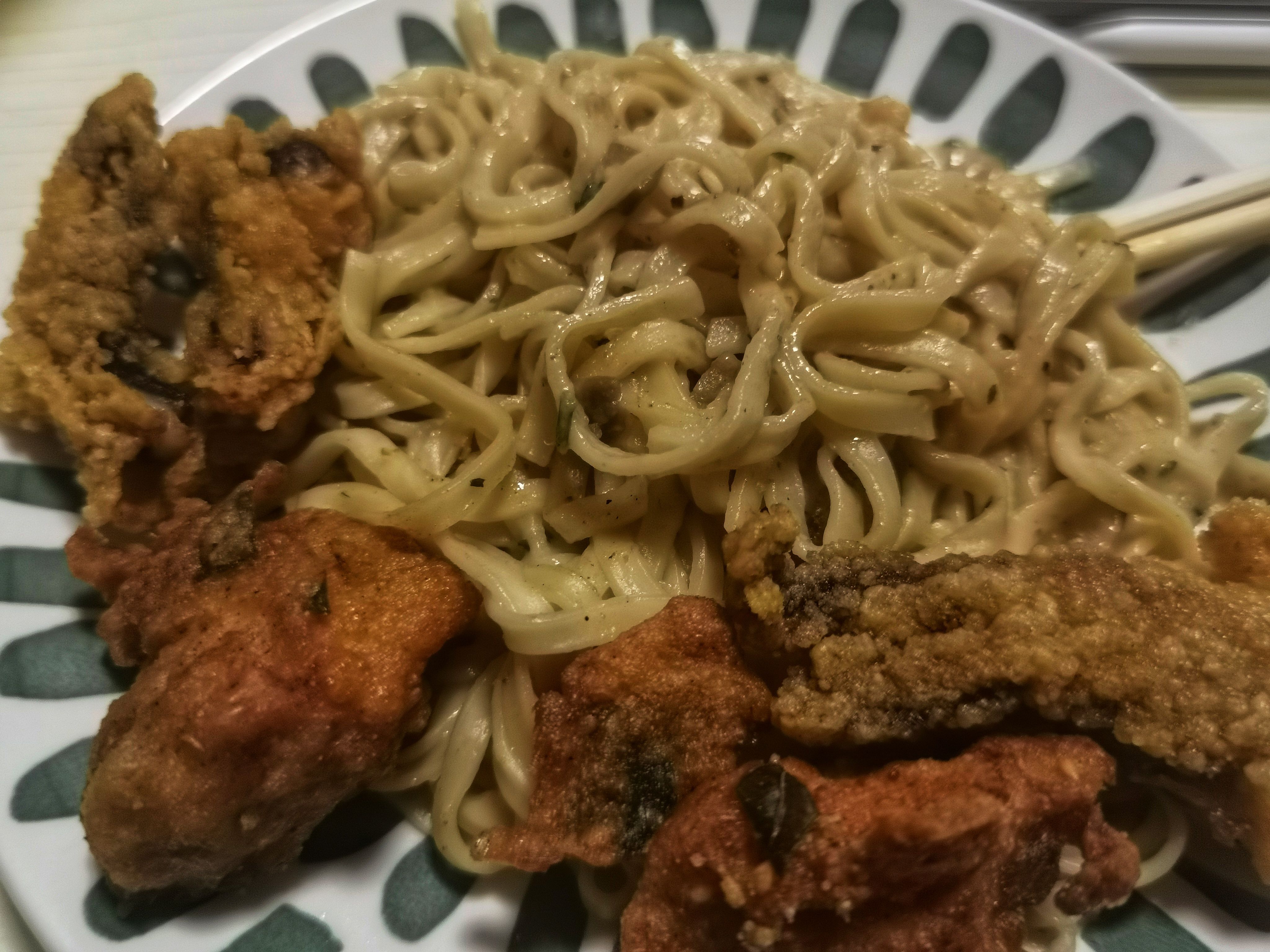 顺便分享今天的饭( ´ρ`)好吃的速食面和速食炸物