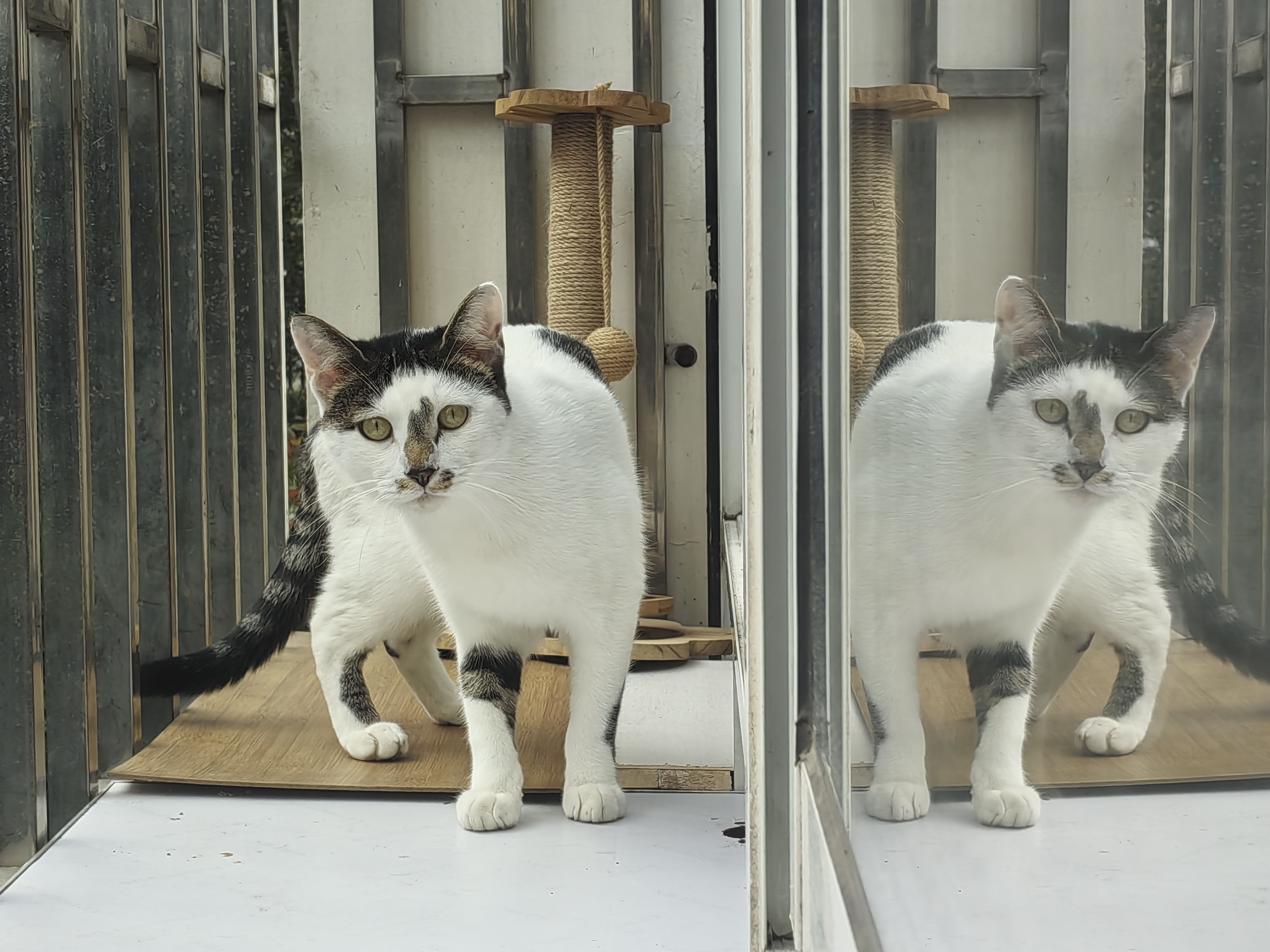 塞咪现在甚至都学会了开窗,下午没事就把窗打开溜出去晒太阳。当然我们不担心任何一个猫会丢,因为这两个都特别胆小。尤其是塞咪,有点什么分吹草动都会蹿进衣柜里,是典型的窝里横σ`∀´)
