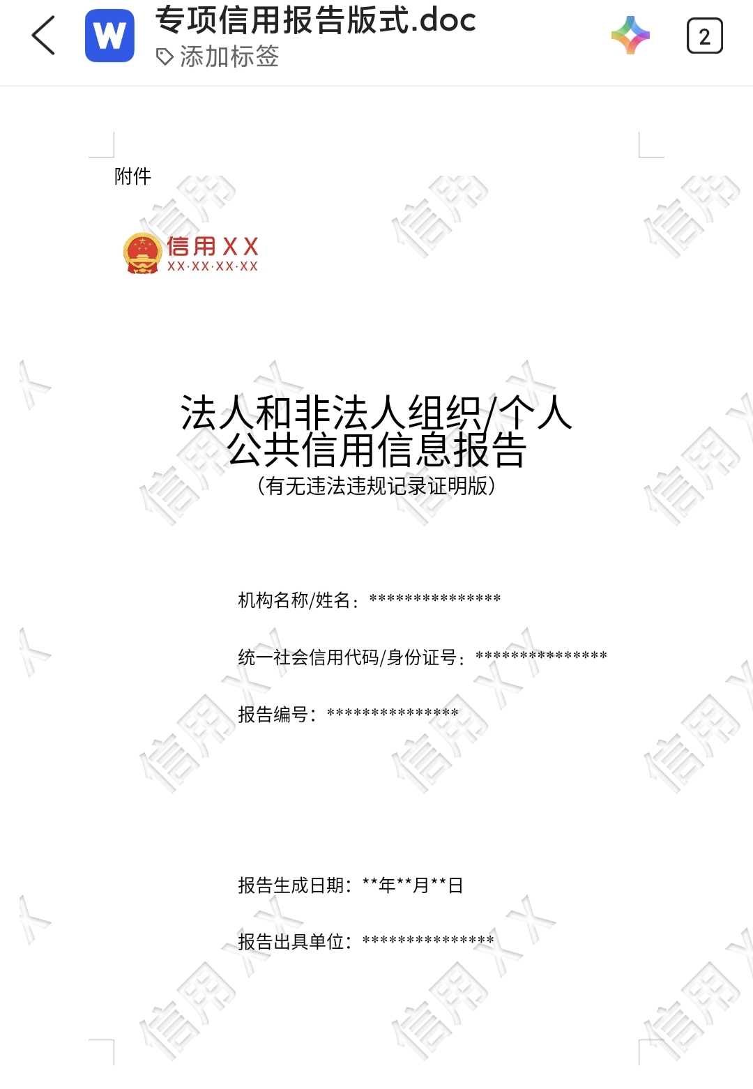 以后是专项信用报告