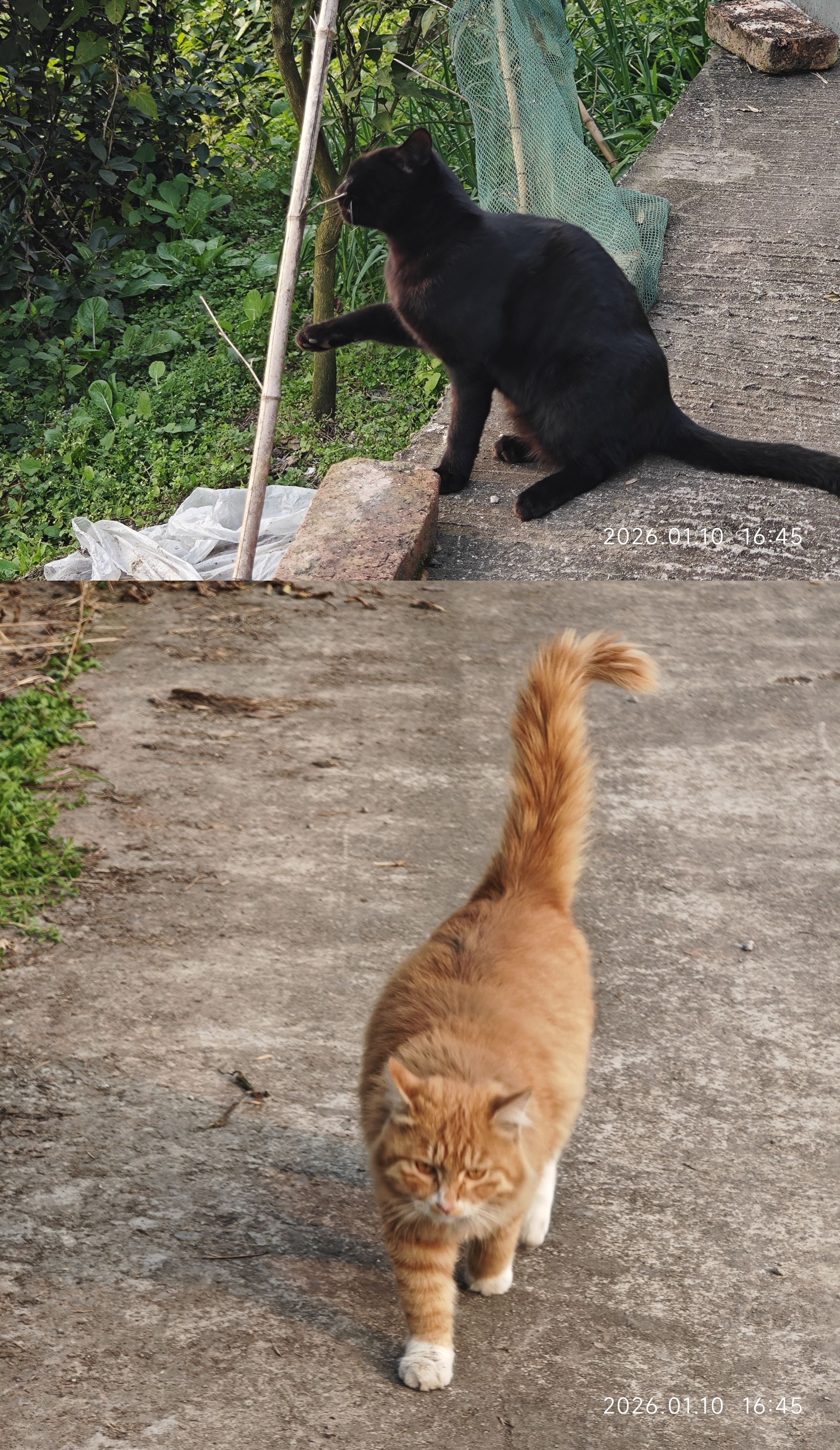 小黑挠痒,小橘雄赳赳向你走来