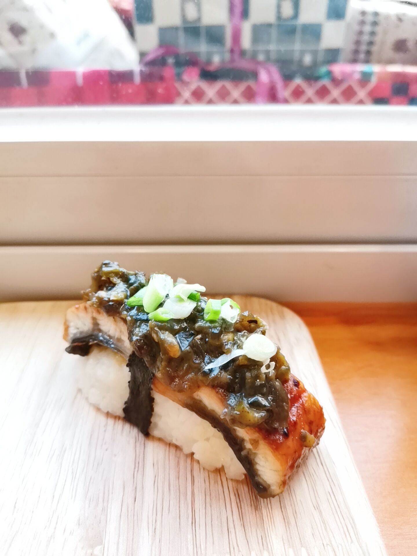 给肥哥看我前几天吃到的皮蛋鳗鱼寿司,居然还挺好吃( ゚∀。)