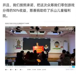 这是完全把众筹当成了一种营收手段( ゚∀。) 有一说一我要是众筹玩家,看见游戏开发商把我用来支持他们完成游戏的钱拿去做慈善,心情应该很复杂吧