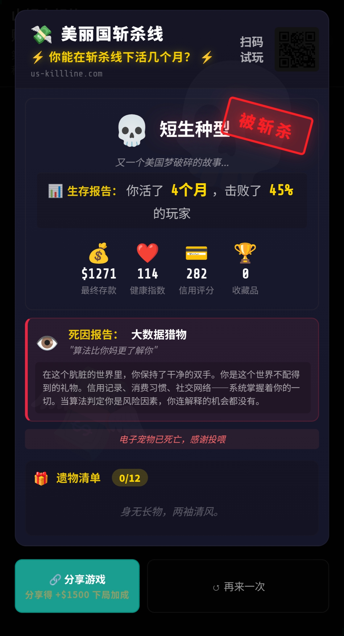 ice那个月要掉一百多信用,也就是说起码400信用才能活着( ゚∀。)我觉得还是去赌彩票吧