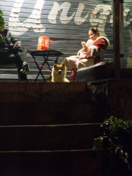 他们在忽明忽暗的路灯下散步,我在跟着他们,我紧闭着的嘴巴里说不出他们那样愉悦的声音。六个人的散步,有着五个人和一个人。我好格格不入。没出息的是,我在他们屁股后头就在这样想了,但当他们回头寻我的时候,我还是笑着快步走了上去。