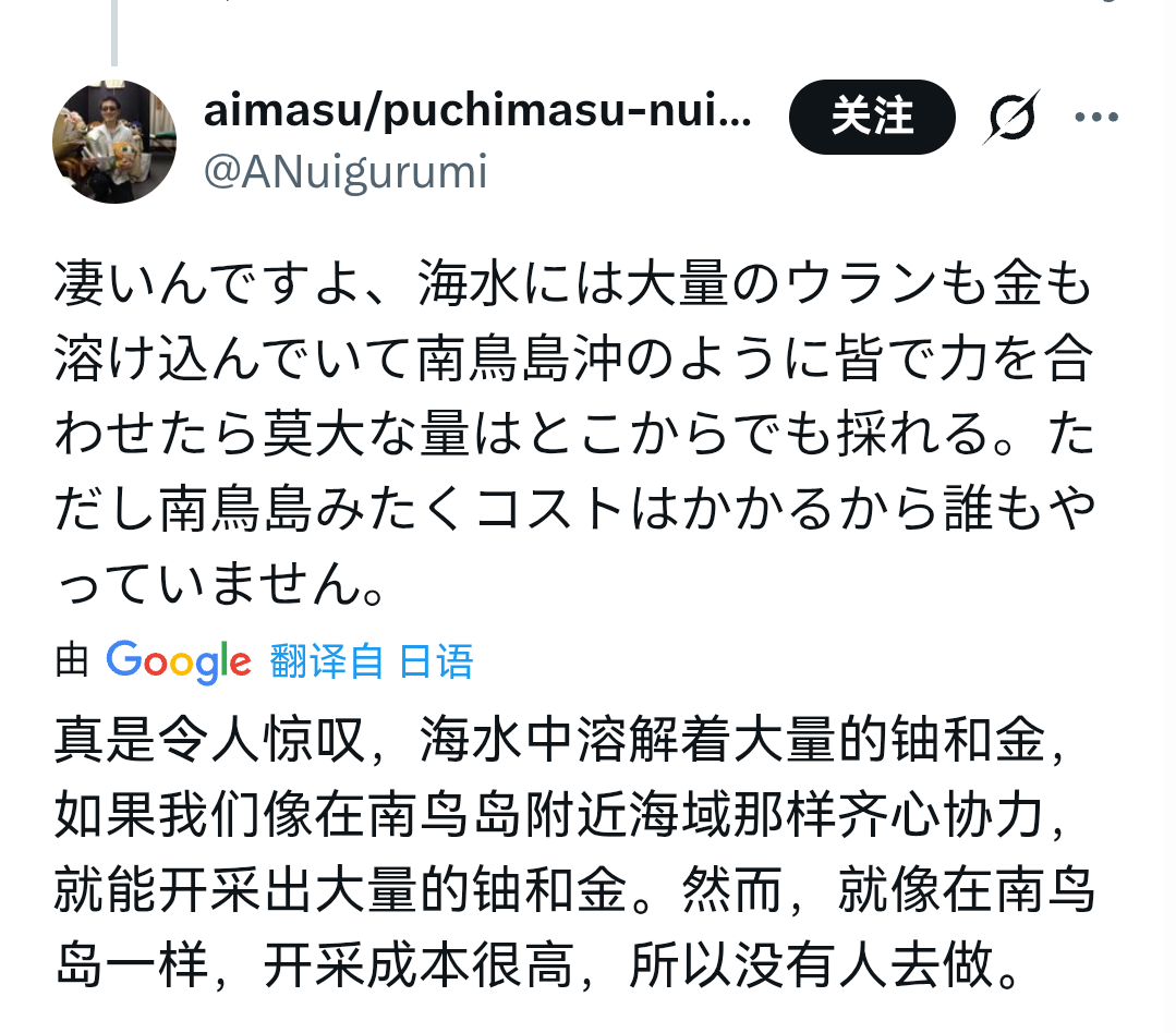 金什么的不知道,你🐌的海水里确实有铀