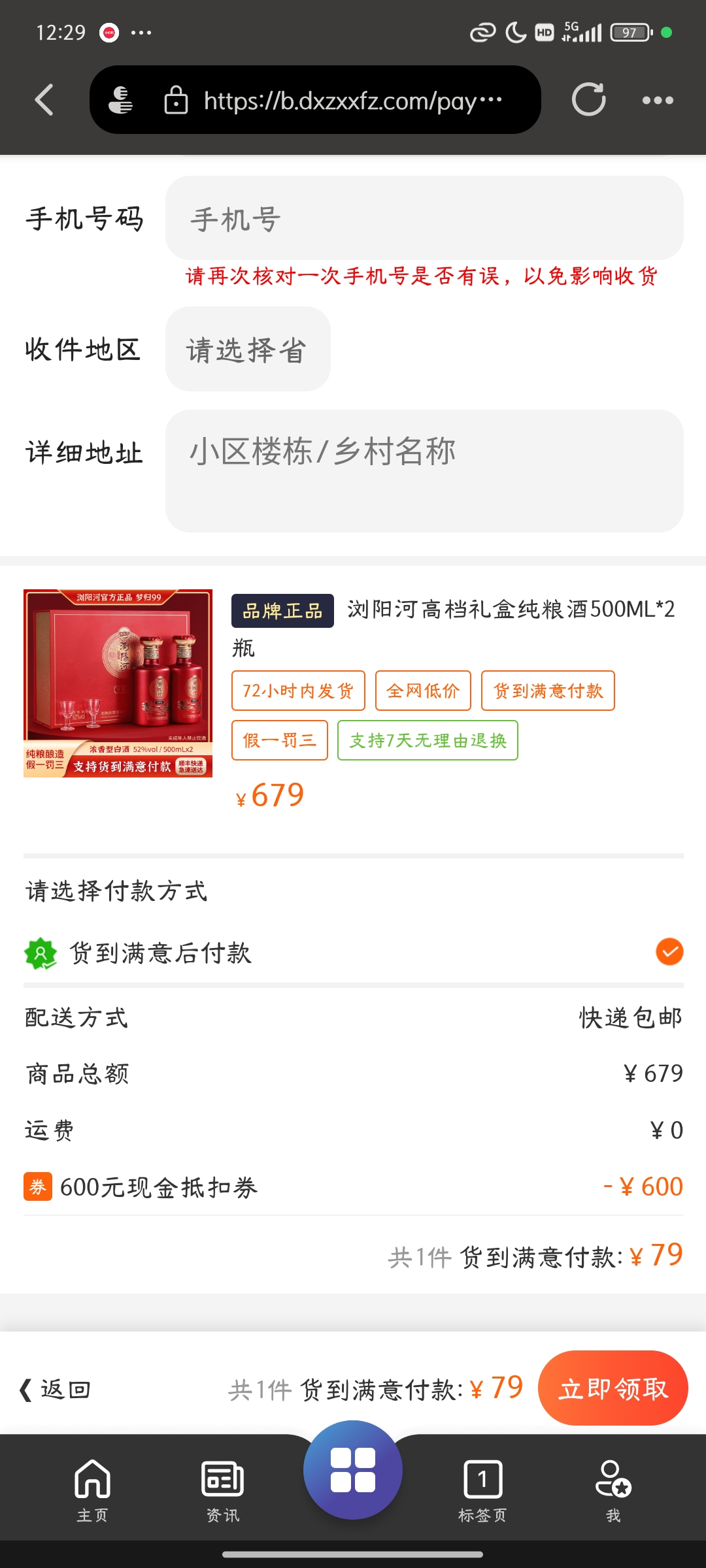 这个酒已经挣你很多了,货到付款不会有啥坑的,噢对好像邮费也是你自理