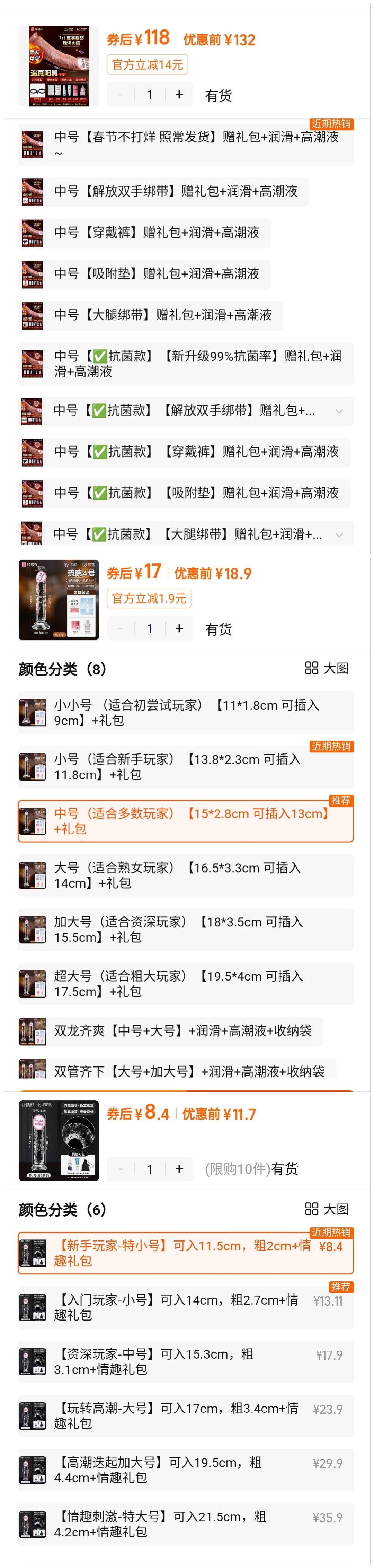 其实从销量和商家设置的套餐数量可以看出最流行的也就是12cm左右,更别提女性zw的时候几乎不会整根插进去,这个长度完全是够用的
