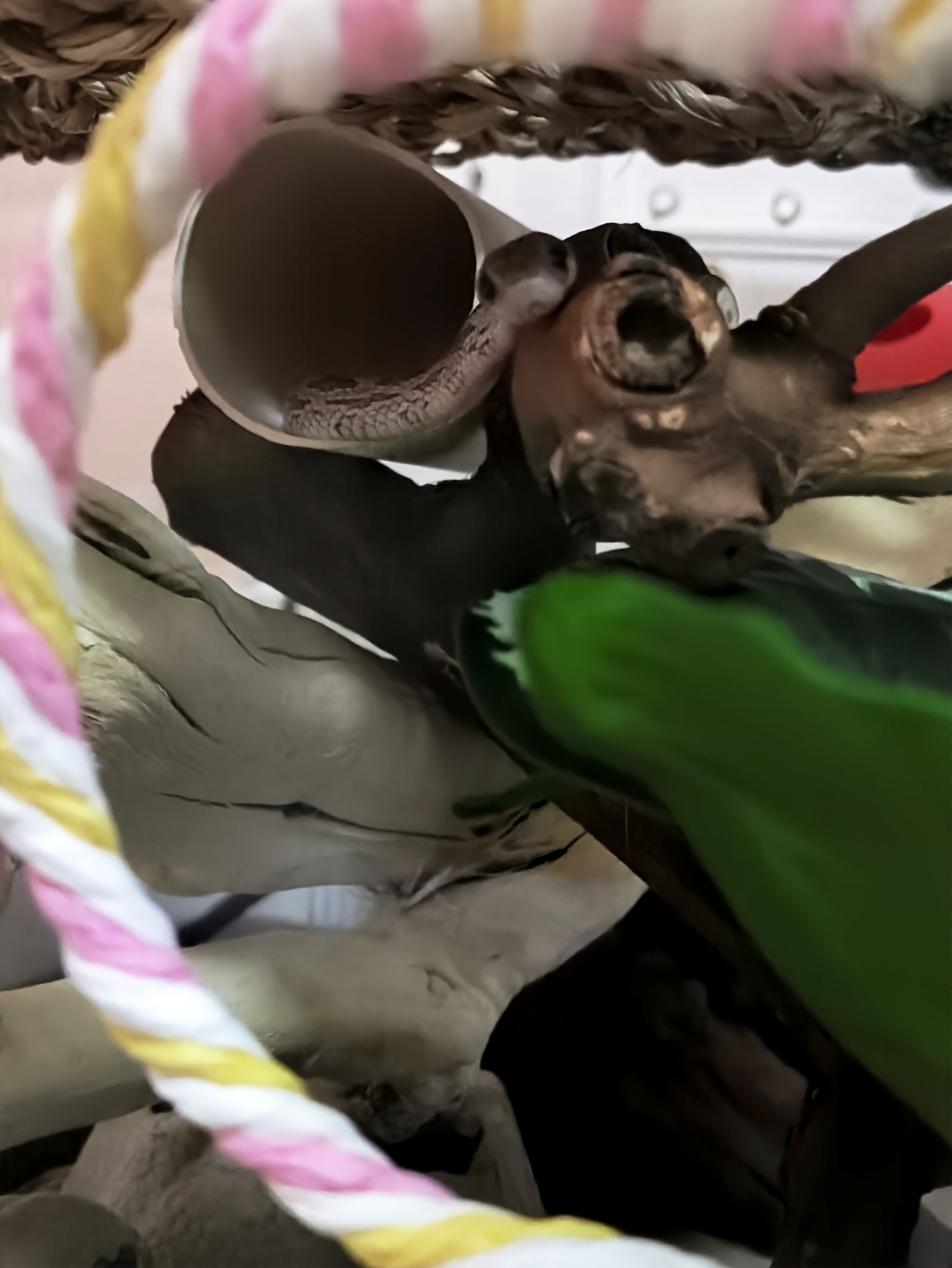 一说这个我又想起,网上看到有个大哥说:每次放风我都先让玉米蛇爬,爬完再让黑王爬,黑王很感兴趣・゚( ノヮ´ )