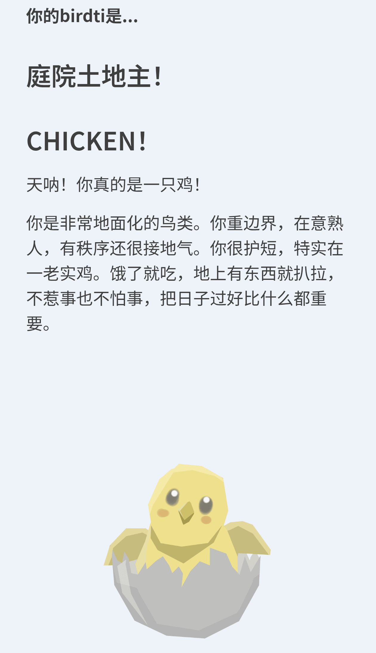 之前sbti突然就爆了,现在属于一个百花齐放(qun mo luan wu)的阶段,主要还是sbti把思路打开了,以前有调侃MBTI的但是没有做成做题的形式,现在这进一步一解构,就进入到互联网熟悉的玩梗步骤了