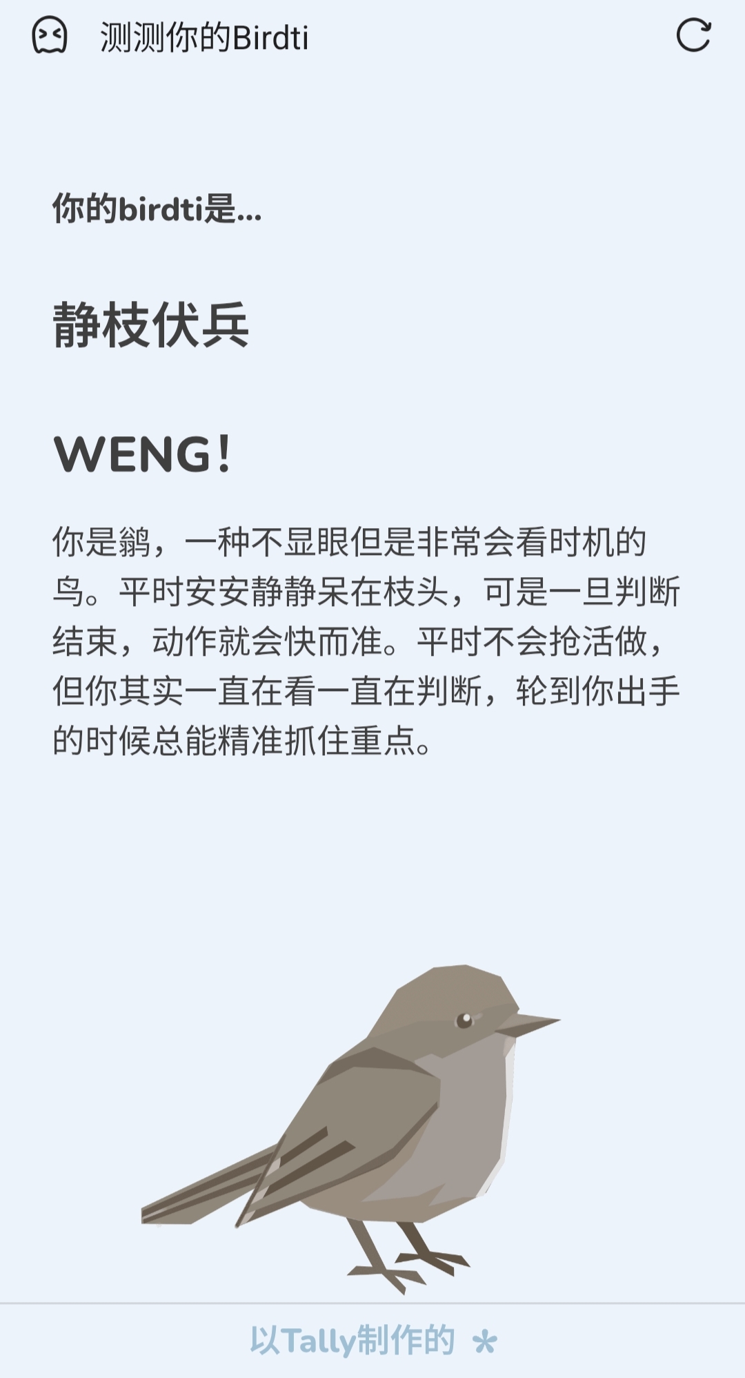 其实mbti之前就有很多这种选择题测试之类的吧,我个人是很讨厌mbti的,甚至从来没测过,但这种倒是不排斥,可能是因为这种明显能感觉到是图一乐的