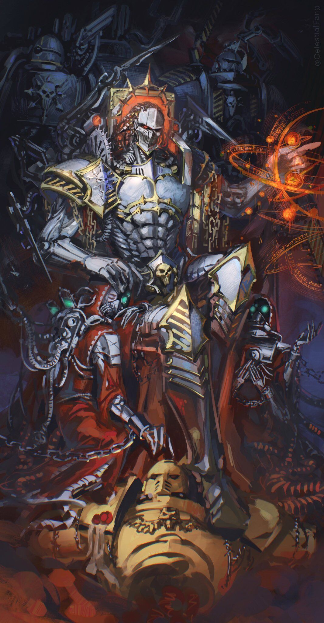 一百个世纪以来,帝国承受了异形入侵,内部纷扰以及背信弃义的黑暗诸神的注意。帝皇静静的坐在泰拉的黄金王座上,那是对抗地狱力量的灵能要塞。 祂独自一人点燃星炬,维系帝国,然而自始至终一言不发。
