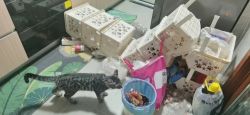 于是同事叔叔一家就把皮蛋装在布袋子里抱走了。在去新主人家之前po笑他是同人女最喜欢的疯批美人属性,事实证明po说得没错,皮蛋去了新主人家头一天晚上就开始玩,再后来便能够探索并拆家。