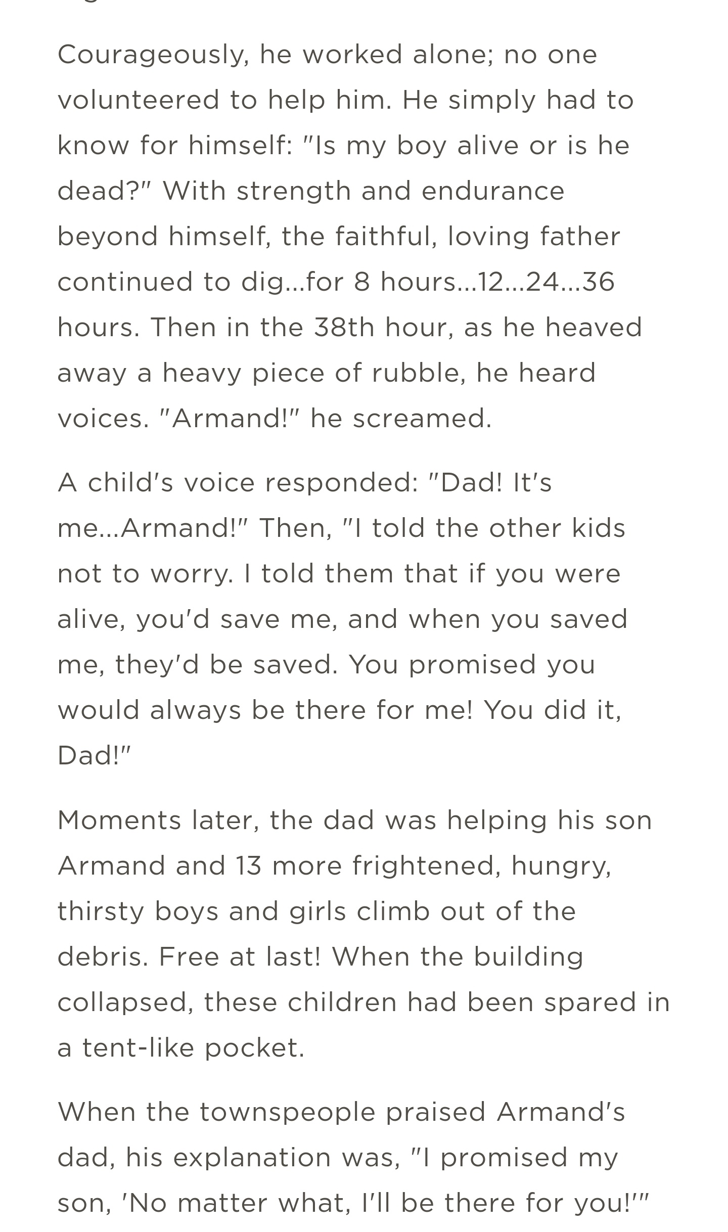 原文的后续部分,可以看出这个儿子的名字叫阿曼德,而翻译过来的课文里的儿子叫阿曼达,基本一致,所以可以确定那篇课文基本上是从这篇文章翻译过来的