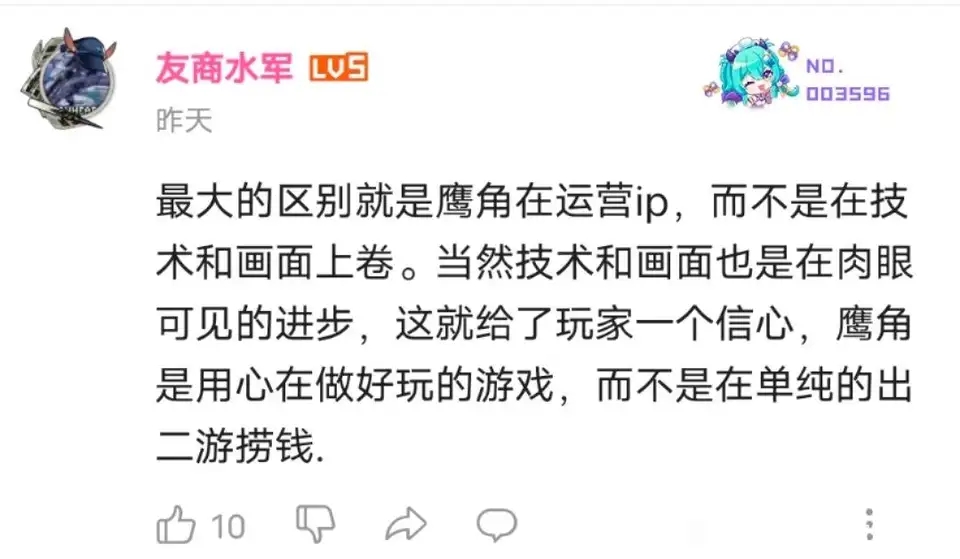 用心运营IP(指游戏形象是高冷鹰小姐,背地里是疯狂买量的营销痴女)