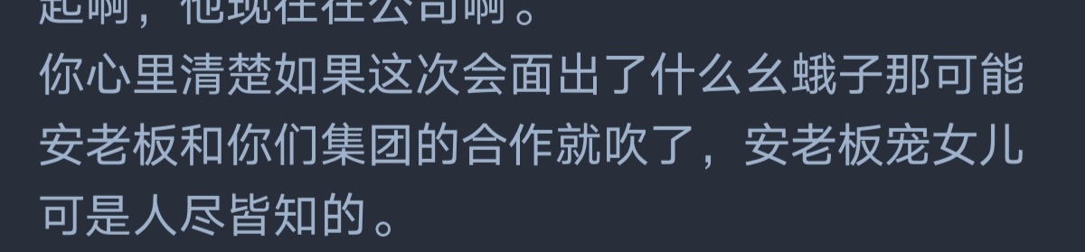 这安然是不是脑缠啊,居然会觉得生意不是用谈的而是要用身体换,本来就一开口就能解决的双方都很乐意的事情