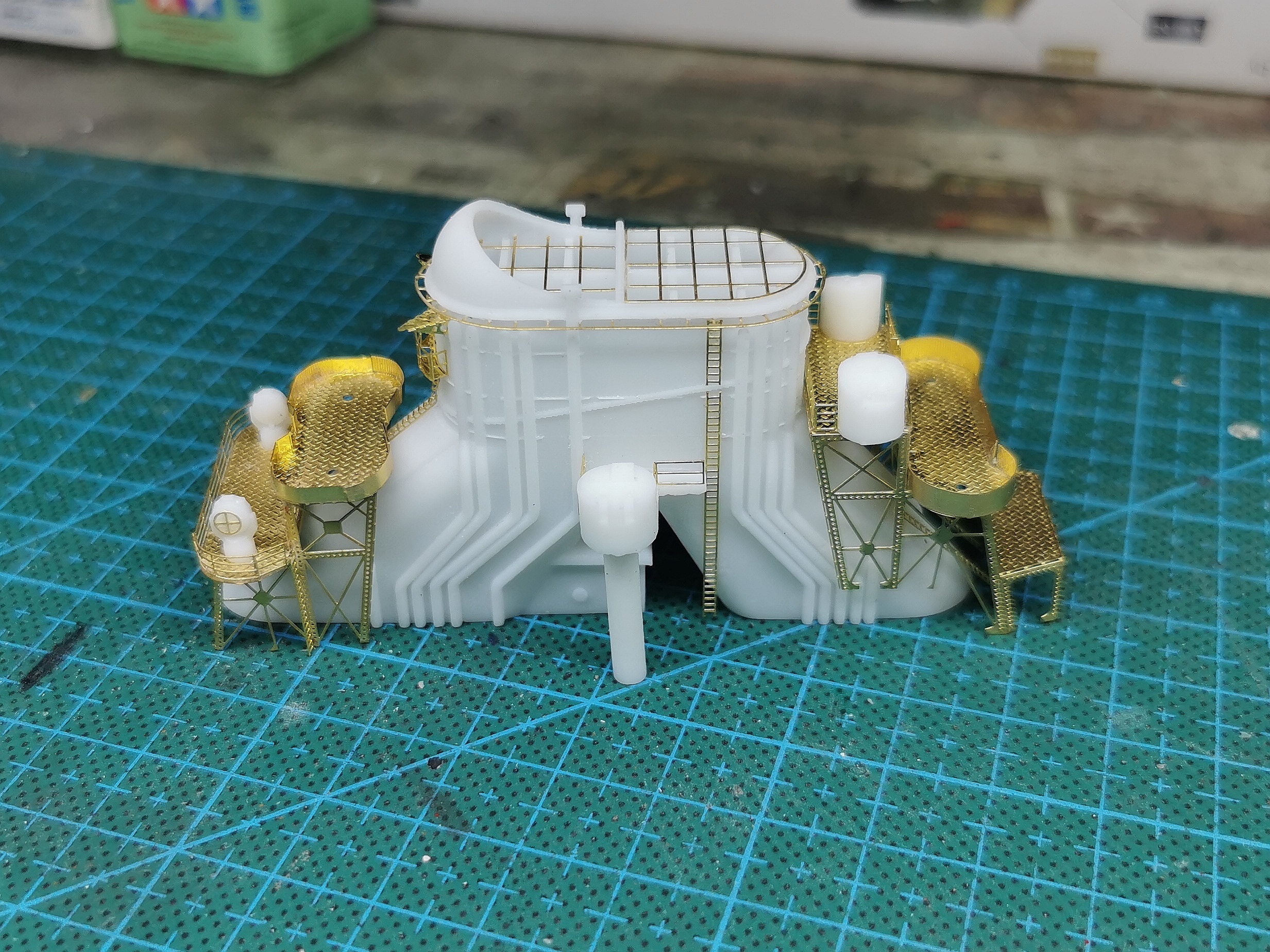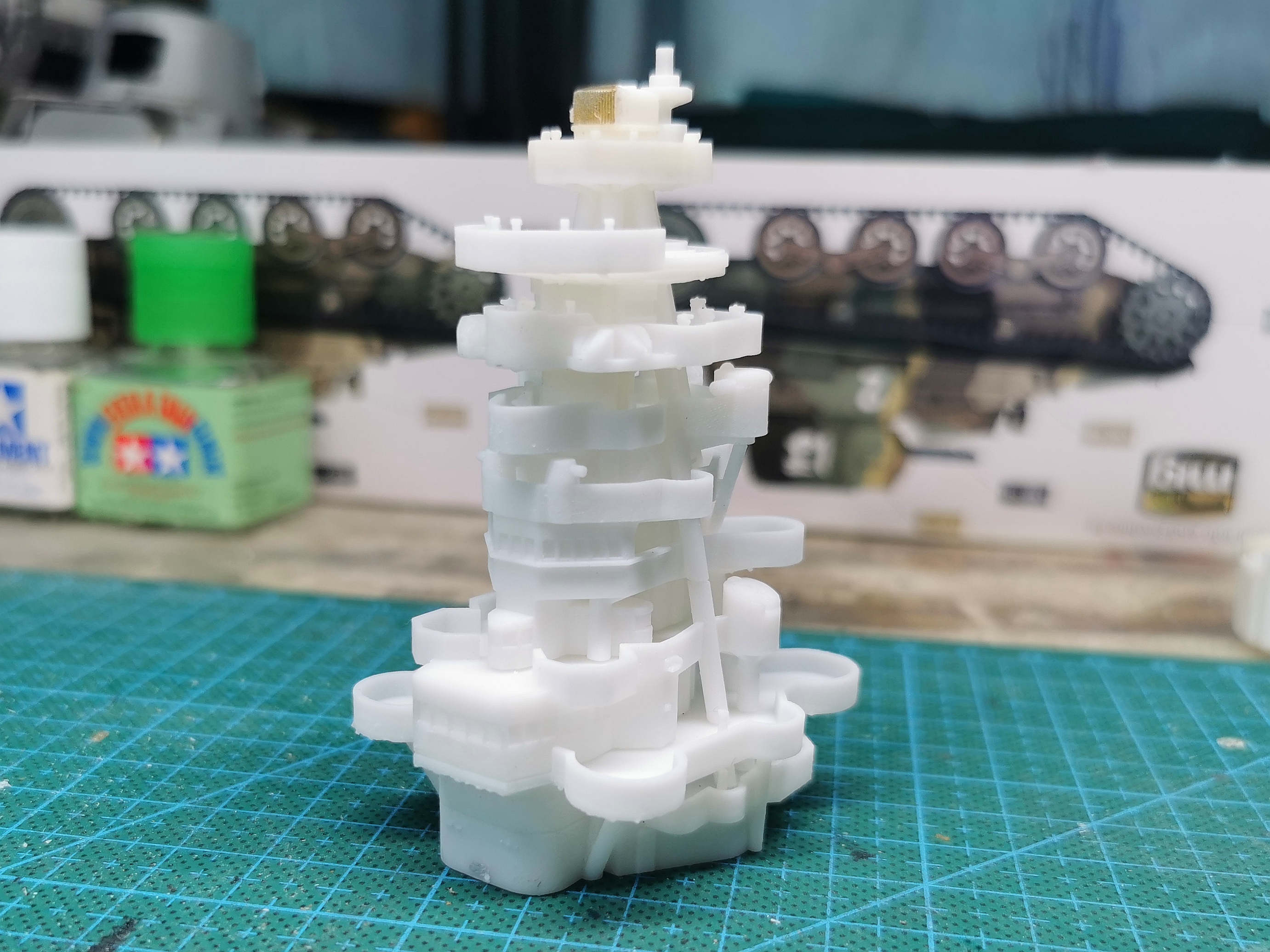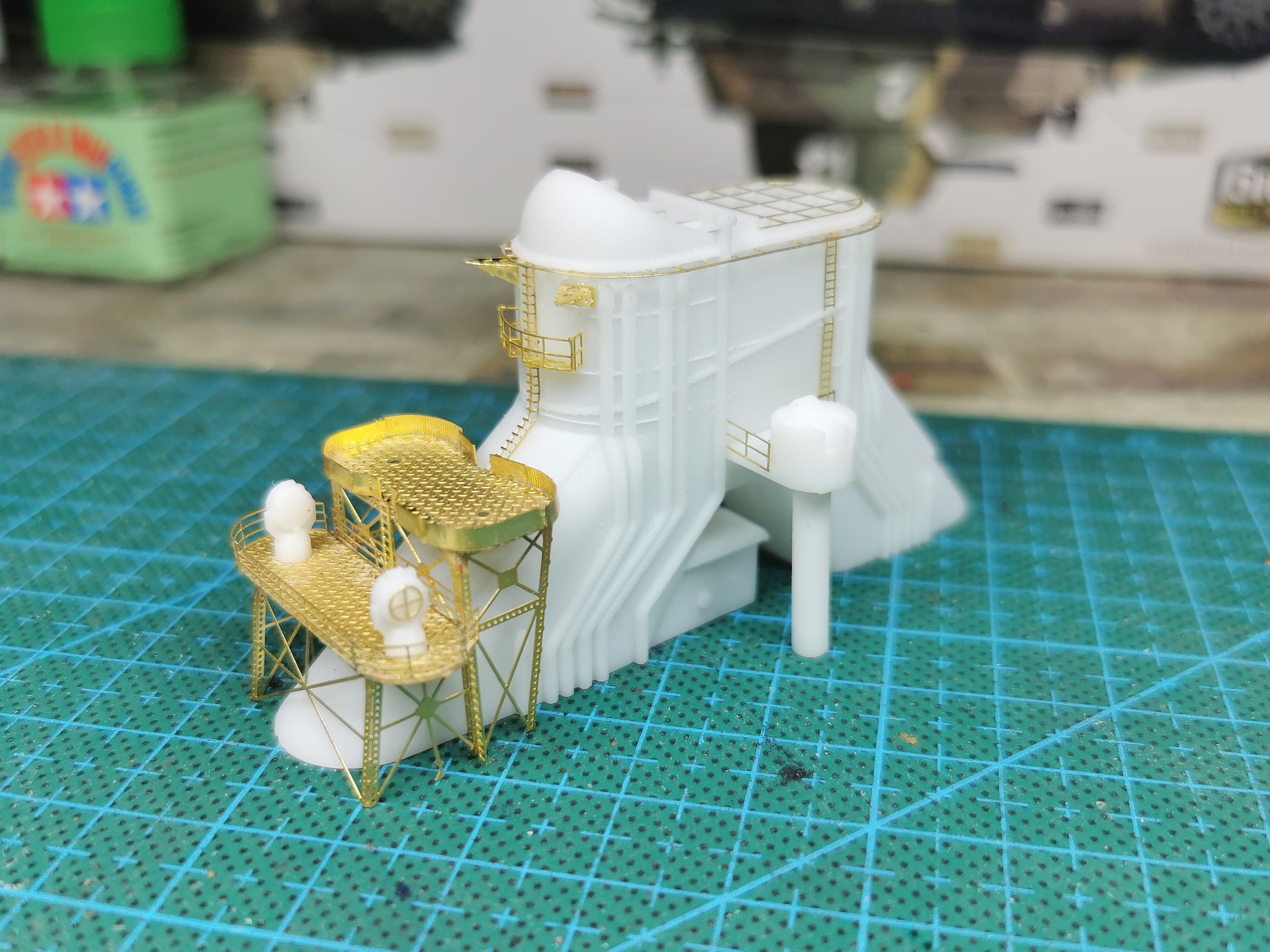3D打印的舰桥围挡太厚了 铲掉用0.3mm的胶板重新围一圈