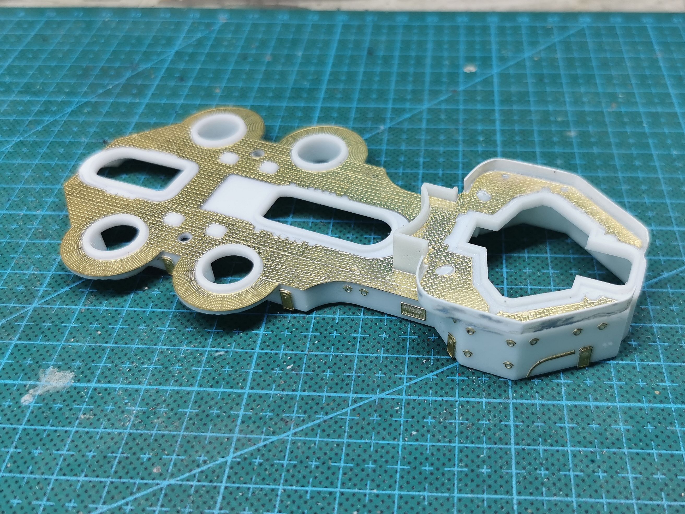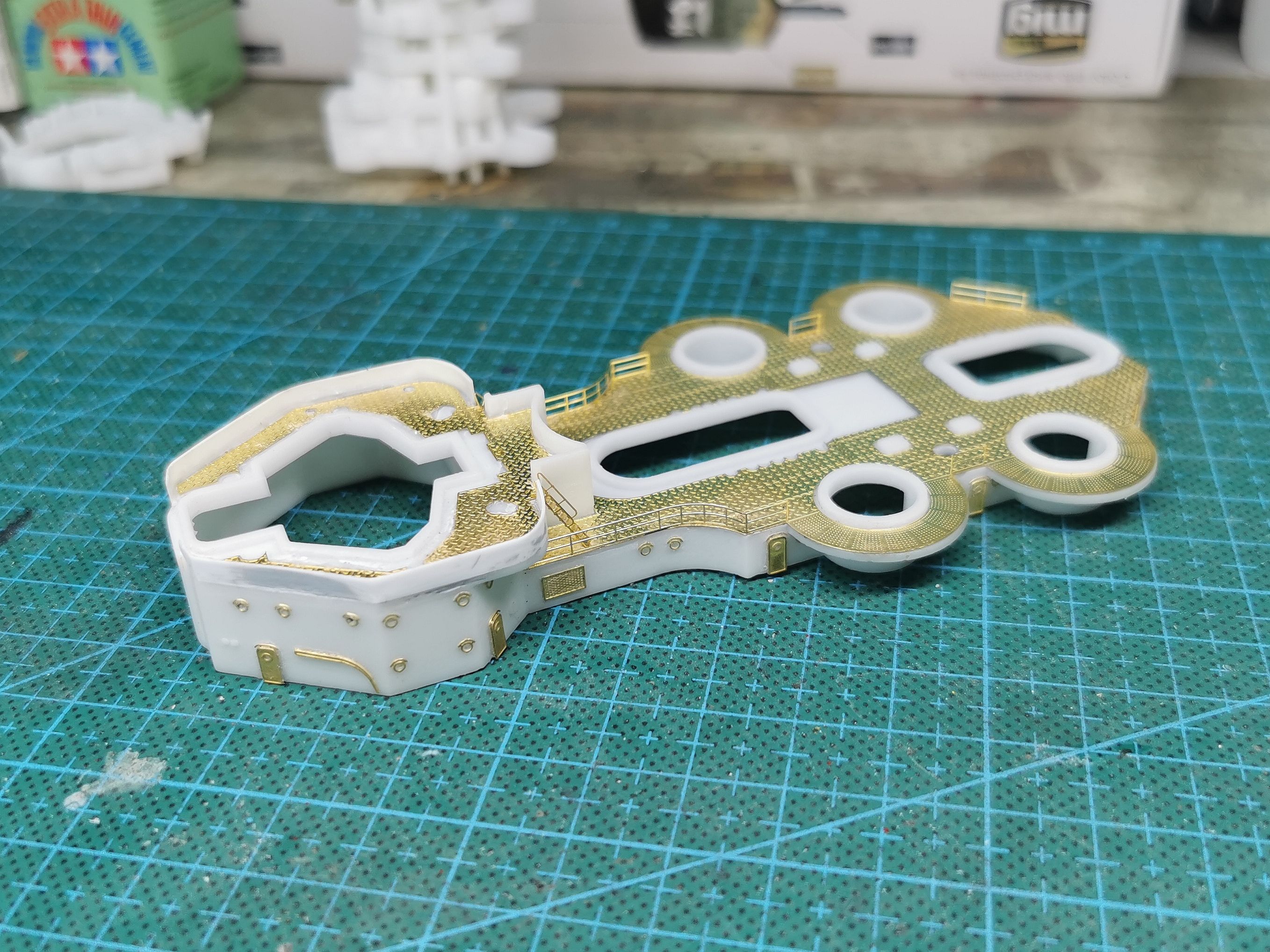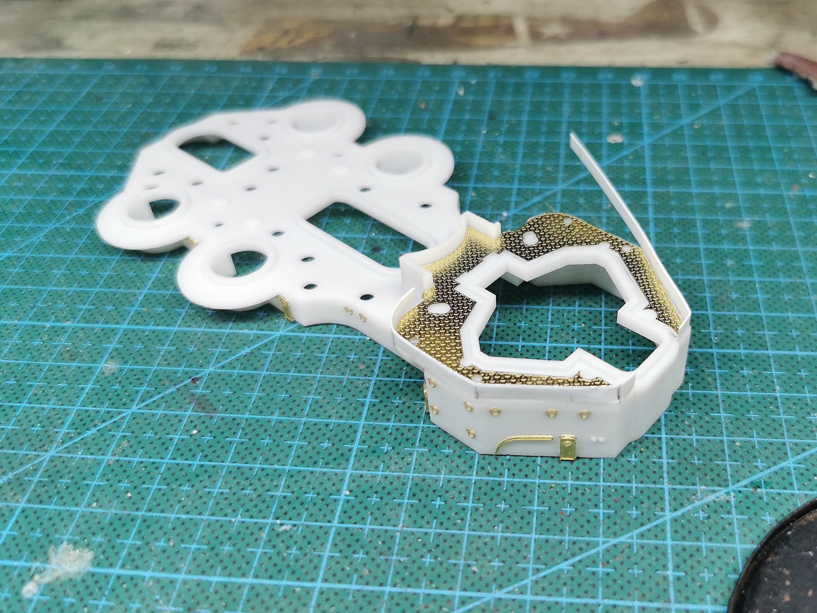 3D打印的舰桥围挡太厚了 铲掉用0.3mm的胶板重新围一圈