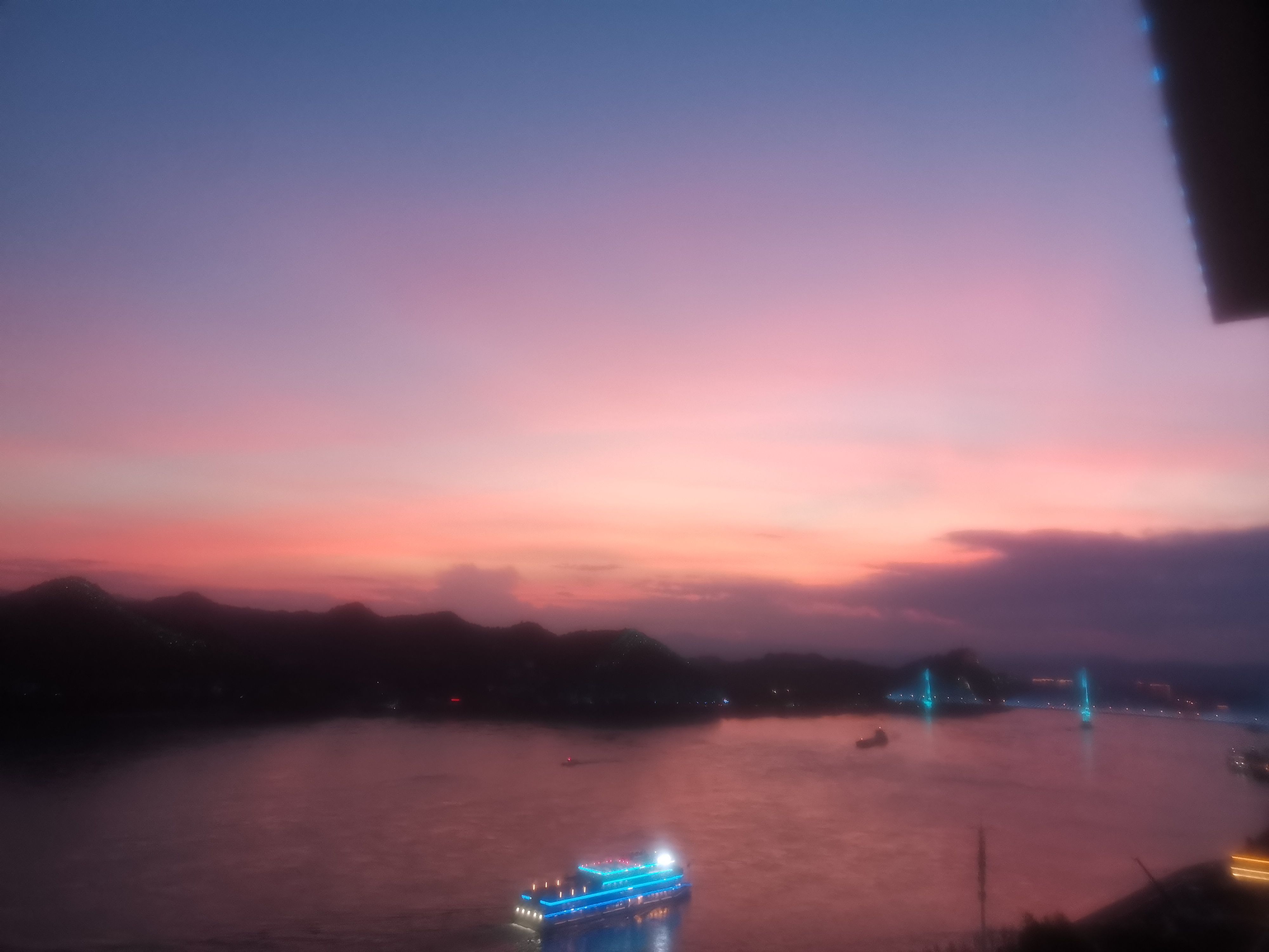 前几天拍的,长江晚霞,江面都是红红的