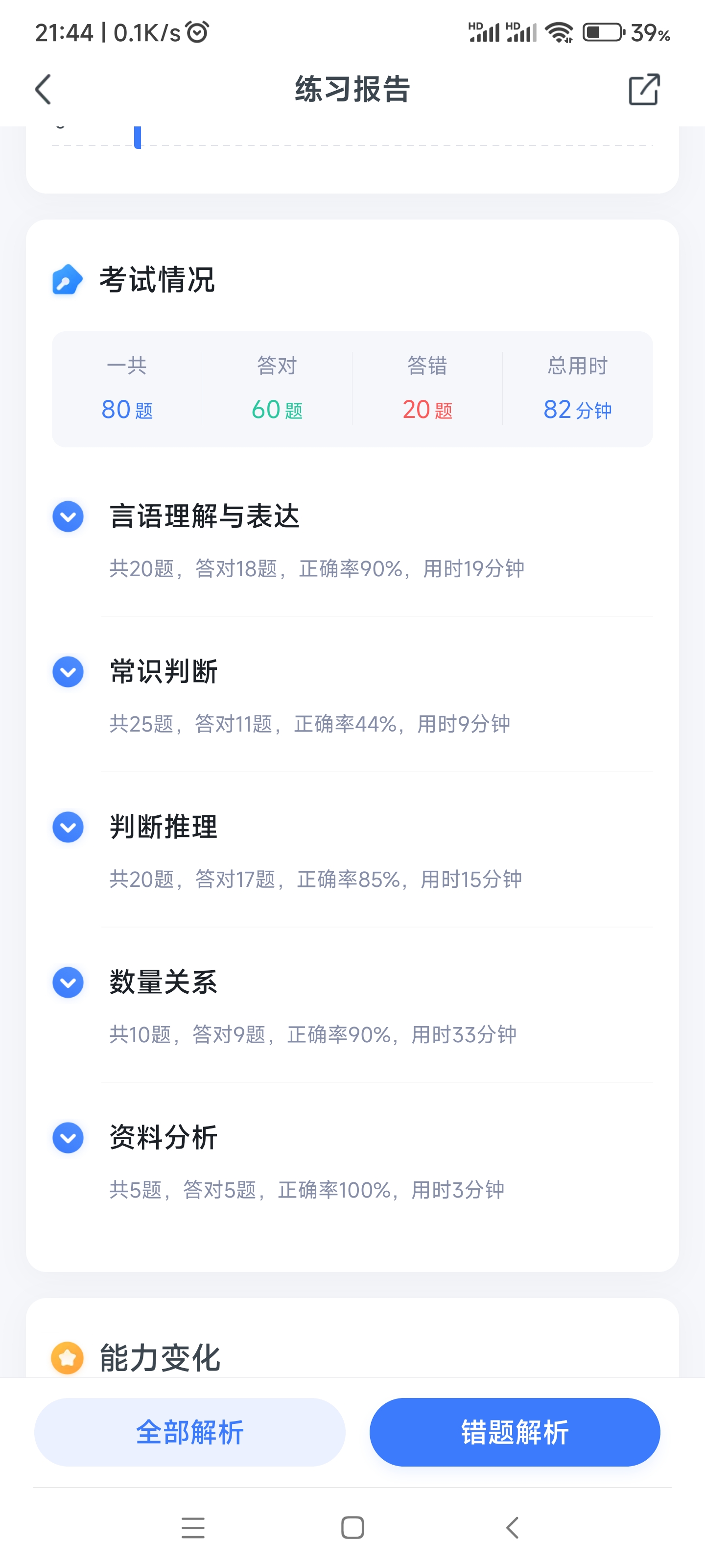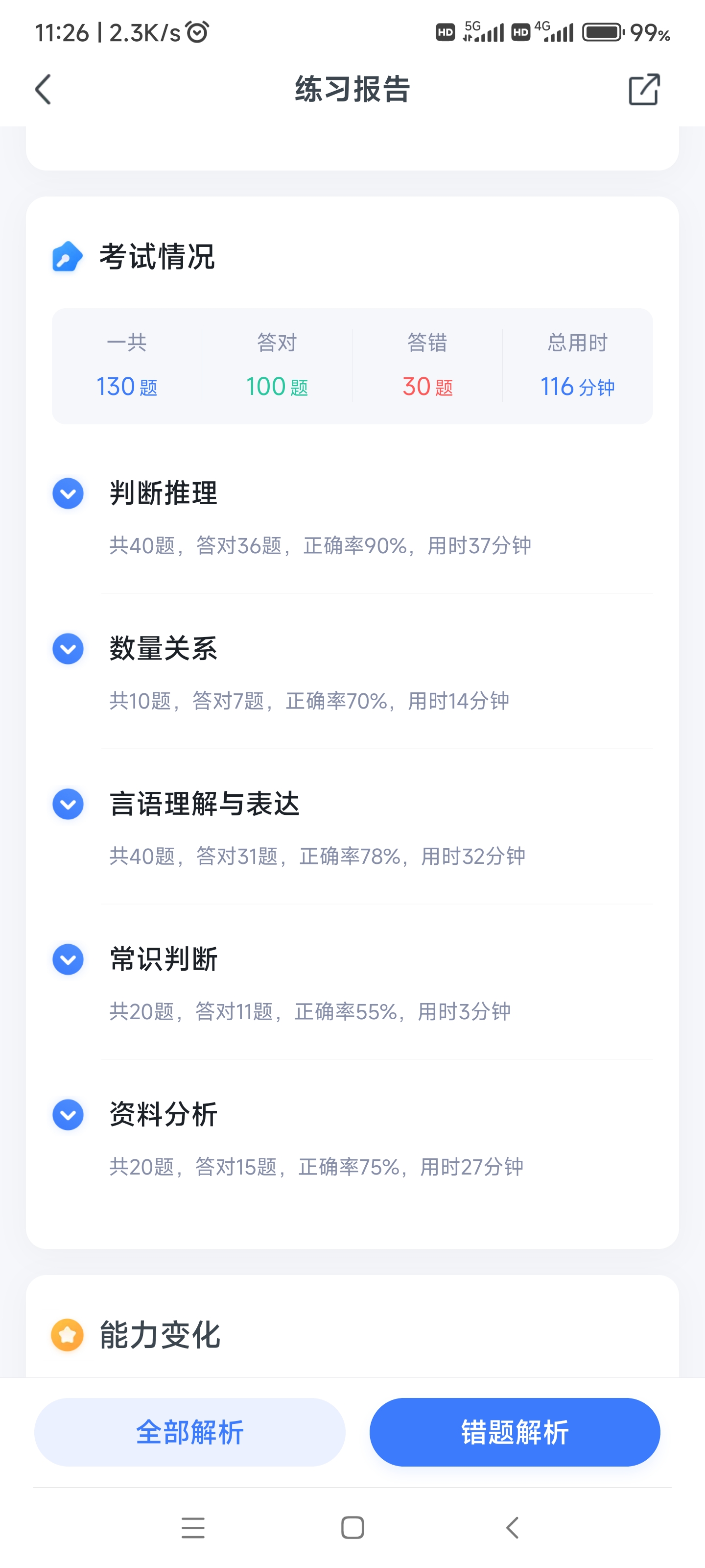 判断21/30,言语22/30,数量7/7,资料27/30。