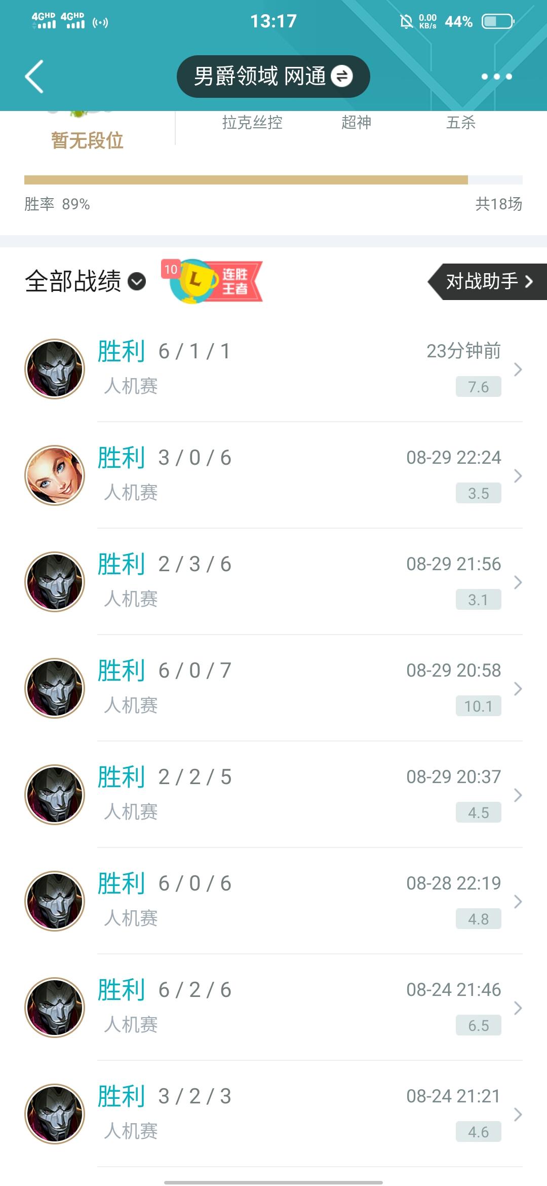 我现在lv9只敢玩人机(`ヮ´ )