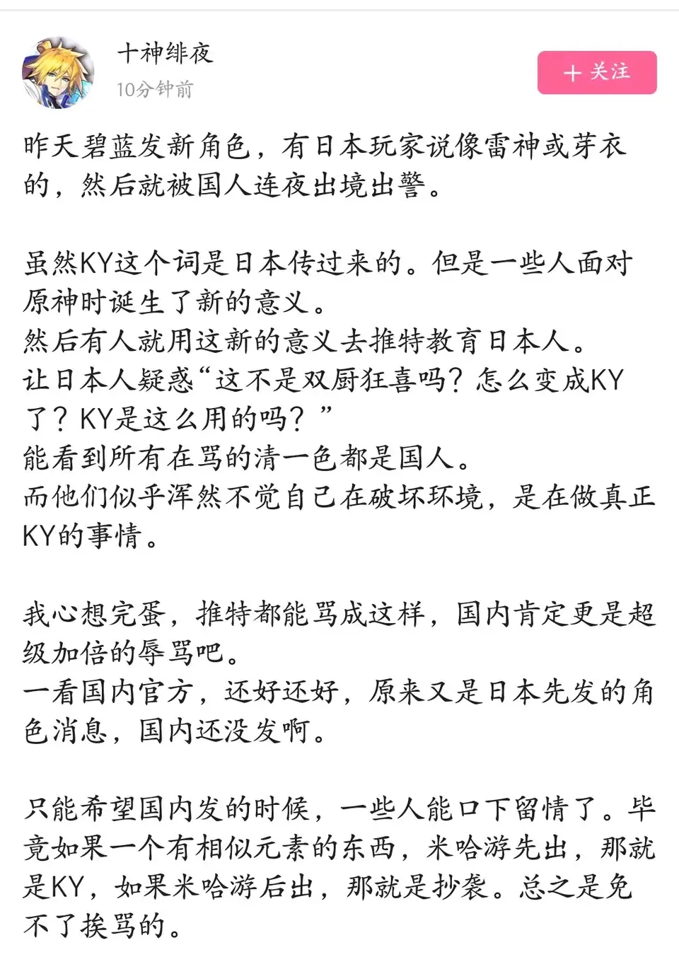 (`ヮ´ )什么叫走向世界啊,只要玩这游戏无论国籍无论人种都能源源不断产出op,不愧是国际化游戏,看图还有经典的跪 舔老外发言,不愧是mhy的孝子,一脉传承
