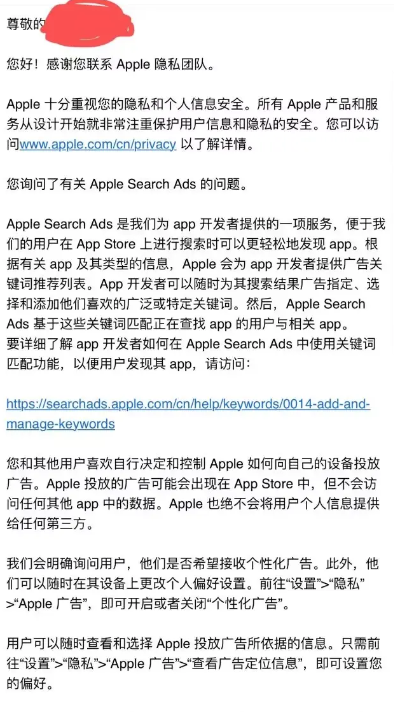 苹果的解释和顽子一样,苹果收集筛选的数据,角只负责通过给钱。整个买量词单是苹果提供,希望社会闲散人士op能够再找苹果要一份名单,当一当手游小警察把所谓黑称给剃掉