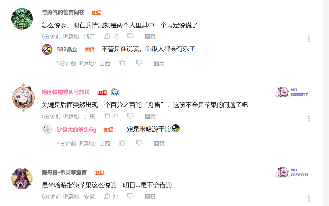 《苹果和鹰角当中肯定有一个在撒谎》买黑称这事反正我觉得是挺乐的,只能说原批将一个大家都默认了的事情翻出来要做清算。而另一个好笑的地方在于,同样买了黑称,鹰角官方跑出来认错辟谣了,米哈游屁都没放出来一个——是不是以为没人记得米哈游买下了原批这个词的广告投送啊( ゚∀。)