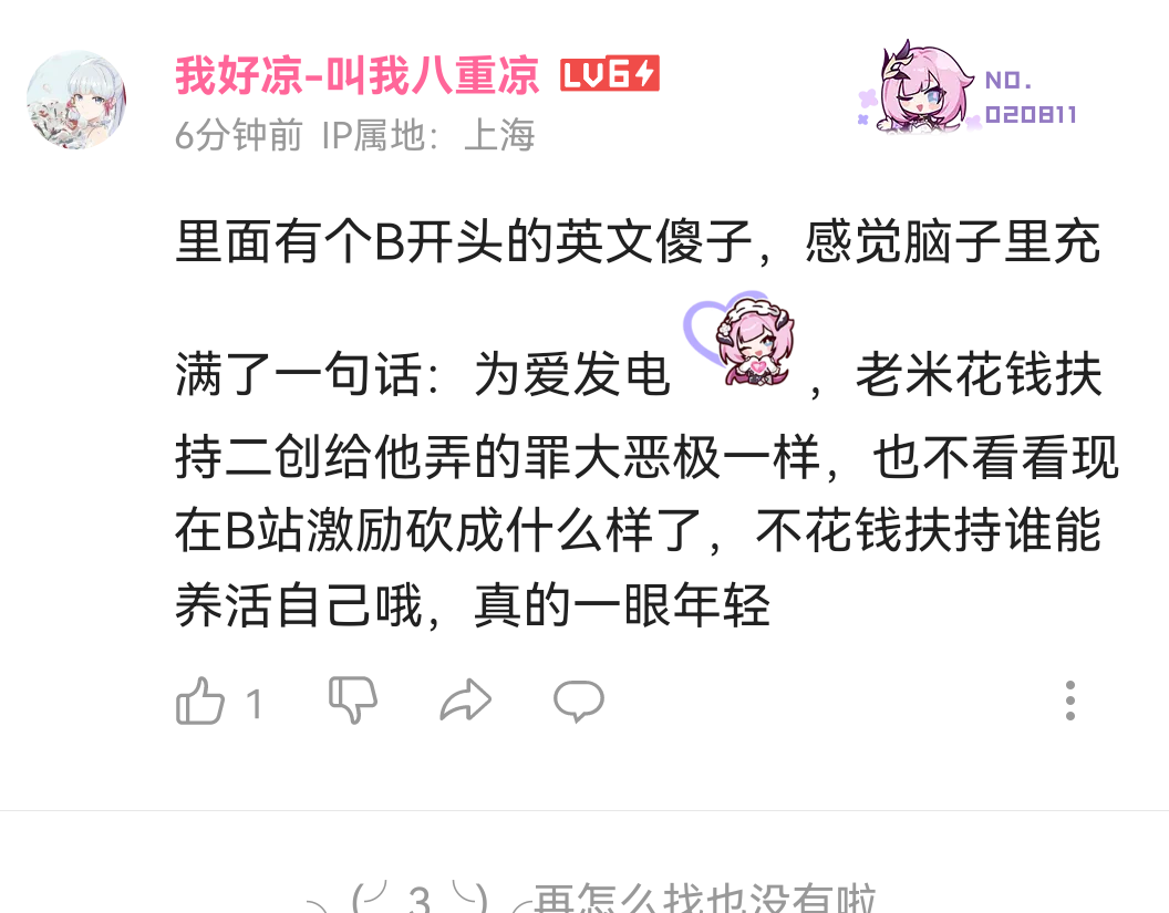 之前吹二创环境说作者用爱发电,现在又吹米好心花钱扶持二创,正话反话都给米孝子说完了,唯一不变的就是对米的忠诚( ゚∀。)有没有一种可能,我是说可能,官方给个人打钱的二创叫商单?