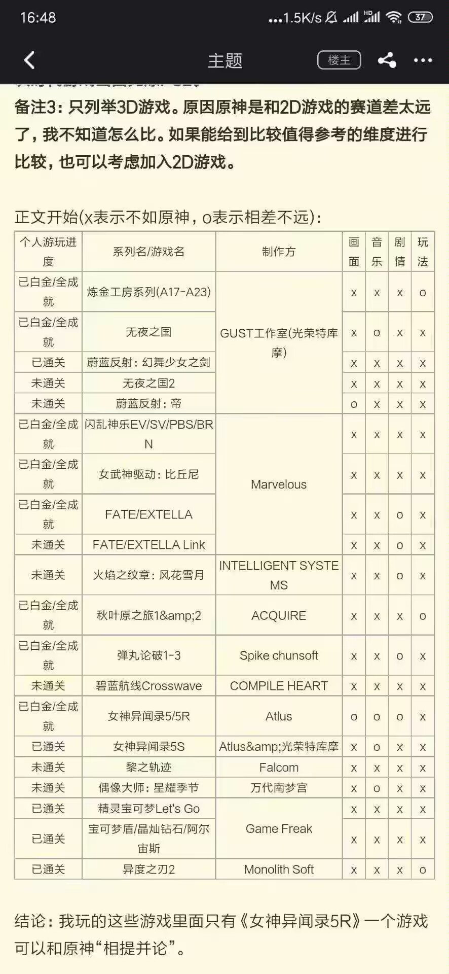 有一说一,o的剧情真的够格吗