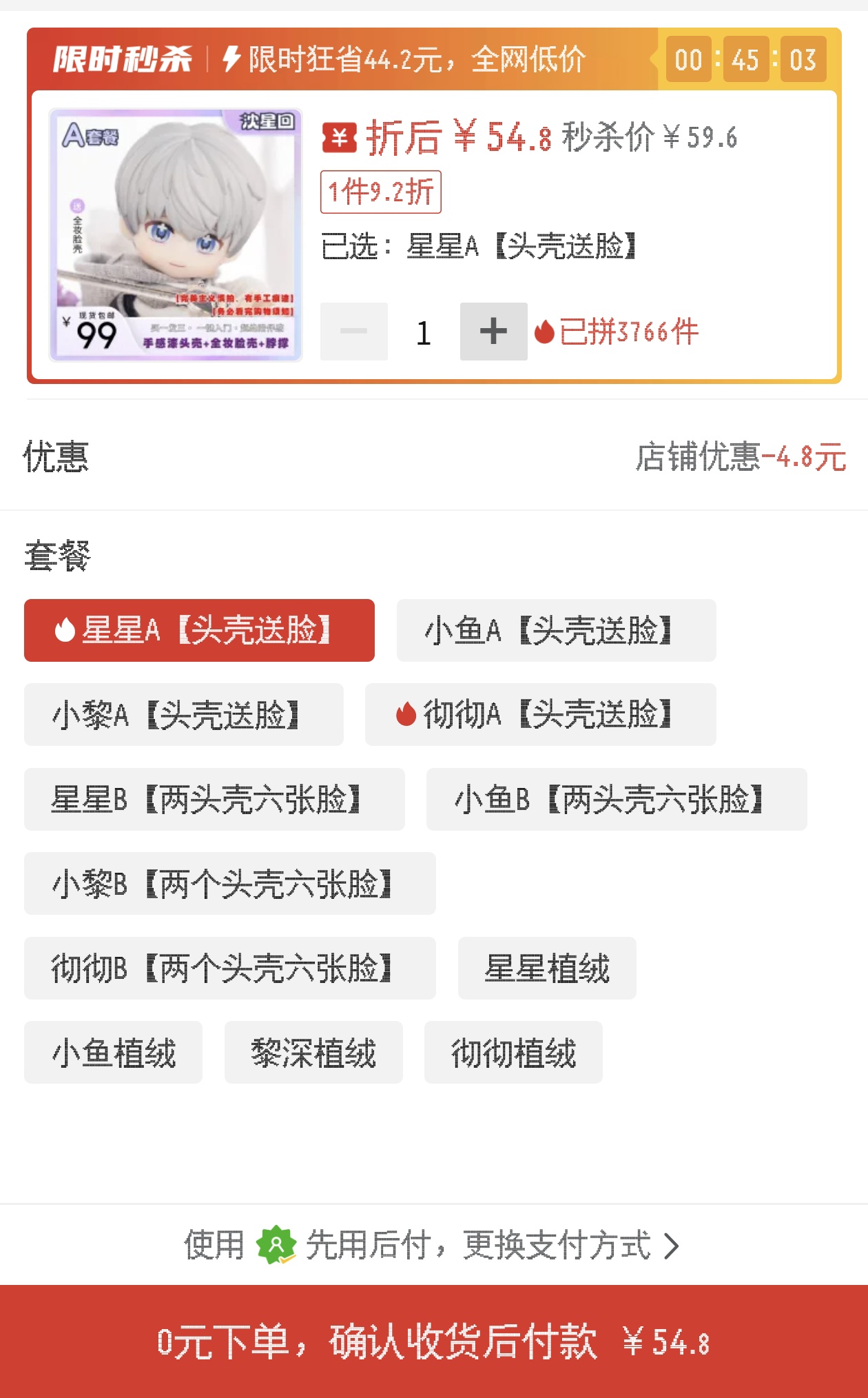 这个2个头+6张脸的性价比也很高( ゚∀。)这就是热门ip的好处吗,有这种超高性价比存在