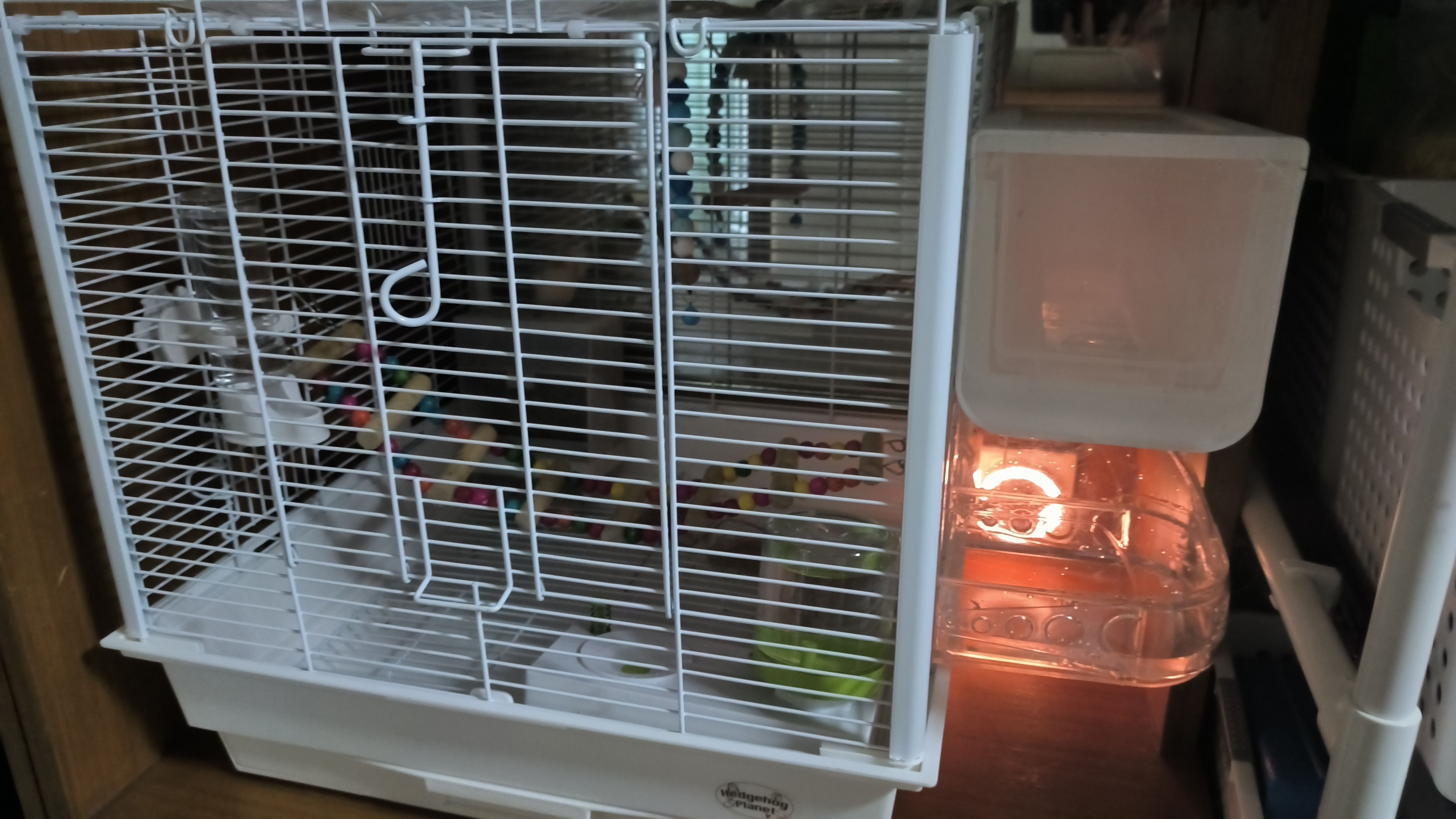给年糕换了个白色的笼子,为了塞进这里我还剪了铁丝