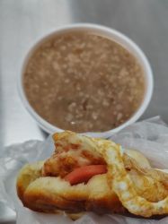 早餐是玫瑰粥和加鸡蛋的烧饼