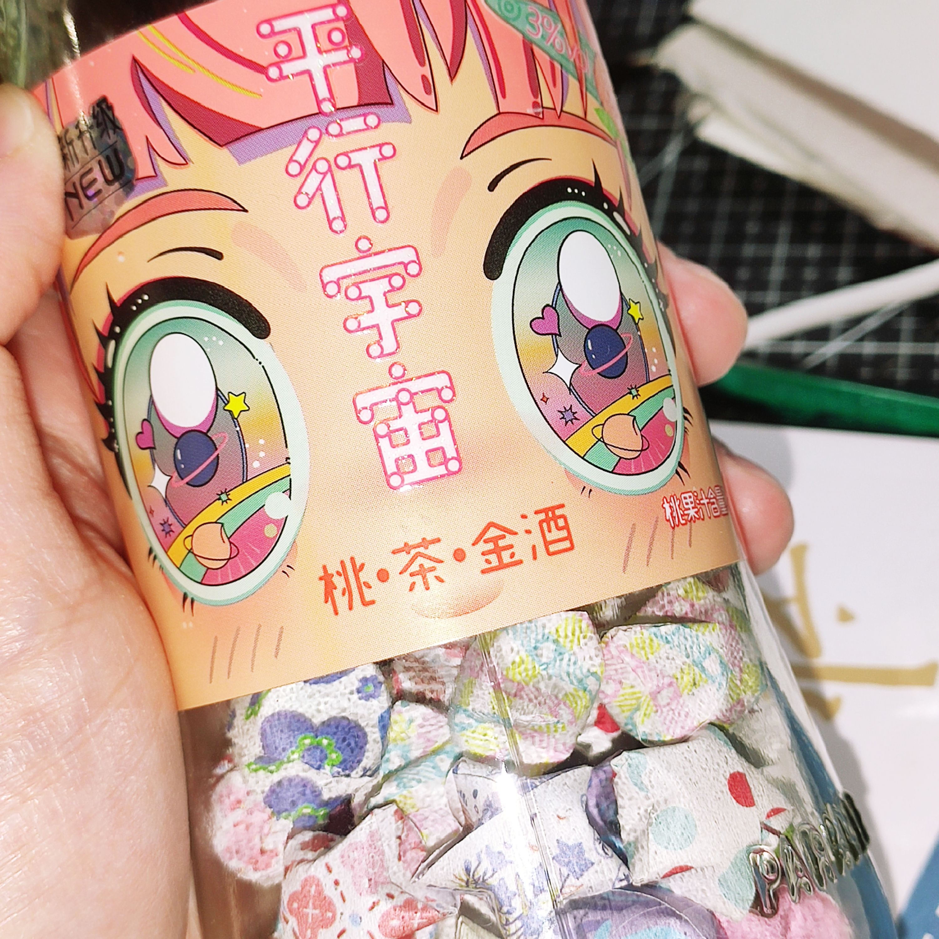 很漂亮的酒瓶子,打算拿来装折纸星星