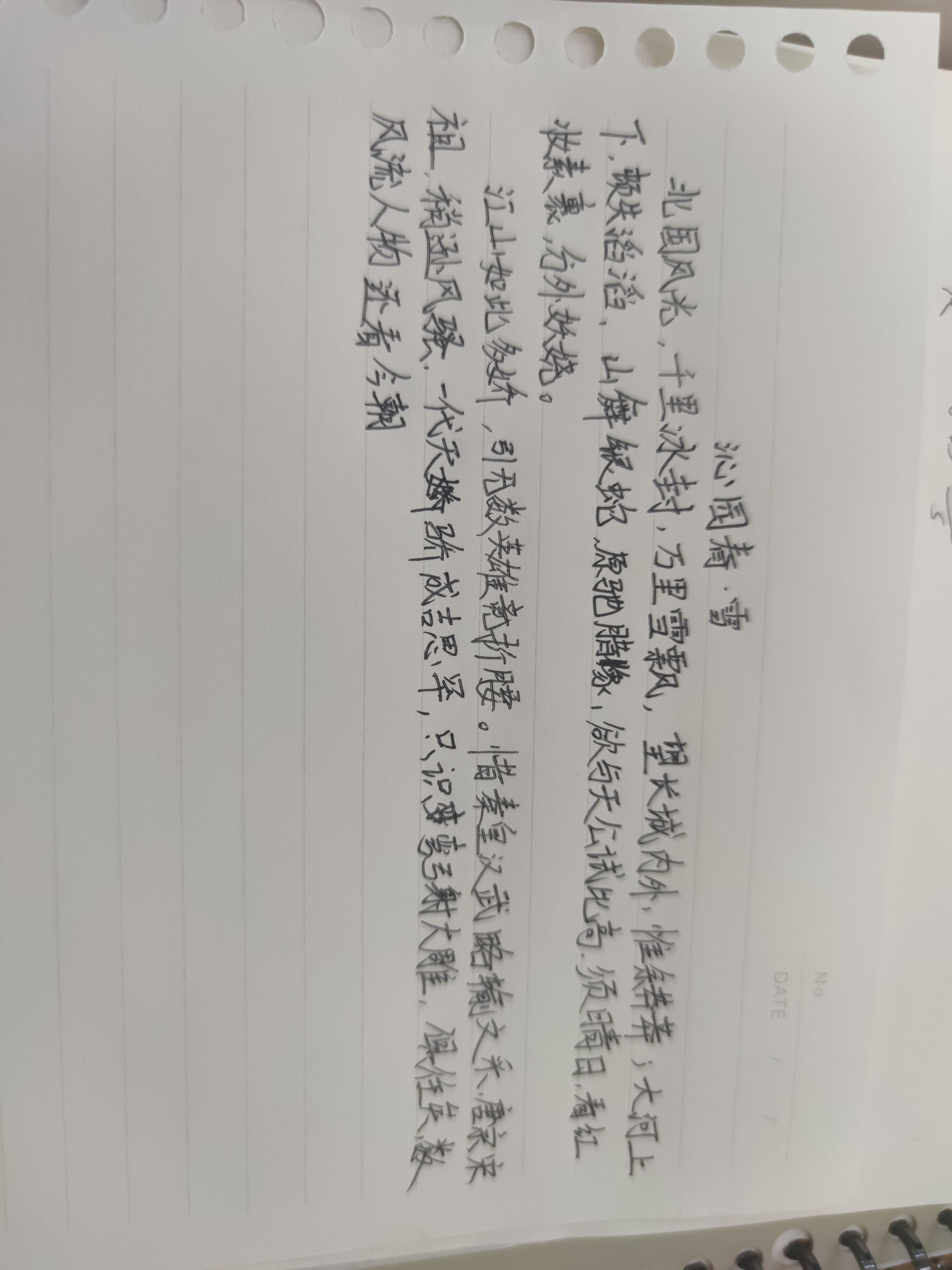 下一个去默写沁园春雪