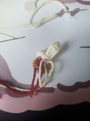 因为这部分,教程里是直接剪不织布,用胶水粘上去的。但肥是个有理想有追求的肥,决心要全部针织全部用缝的。