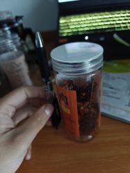 就这么小一罐,里面甚至没装满还有很多空间。口感味道方面的话,一入口很硬,难嚼,但是可以像糖一样含着,过一会就会软,味道还行吧,香辣味的感觉挺辣的。