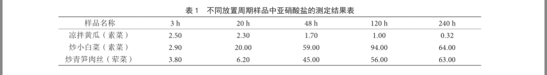 这个的话,我记得看过相关论文《不同食品在不同放置时间周期后亚硝酸盐含量的变化》,出处《现代食品》
