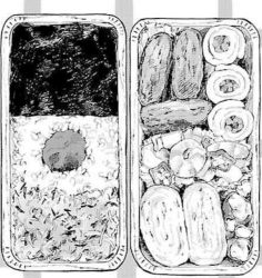 你打开便当盒,里面装着的是妈妈给你精心准备的菜和米饭。