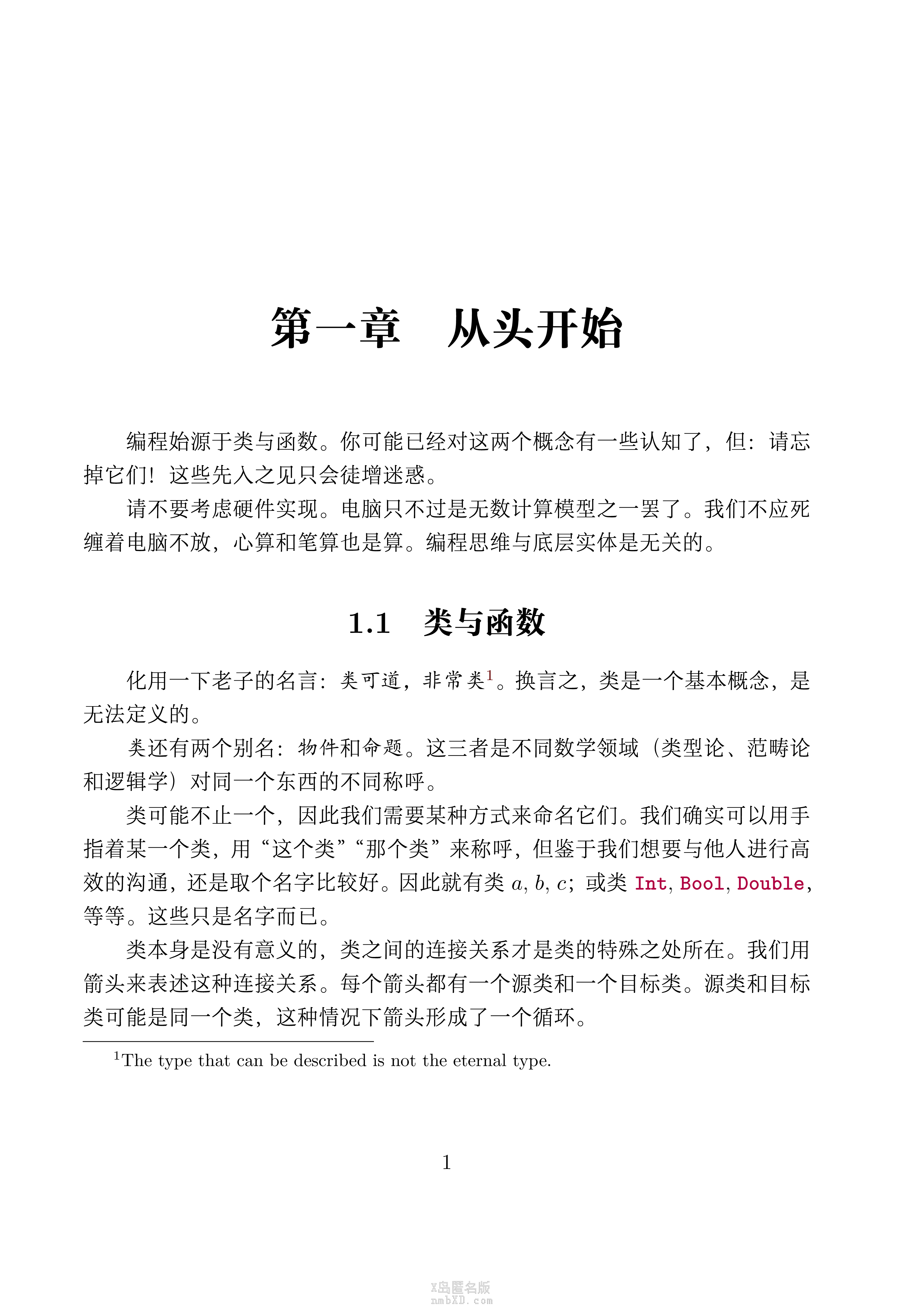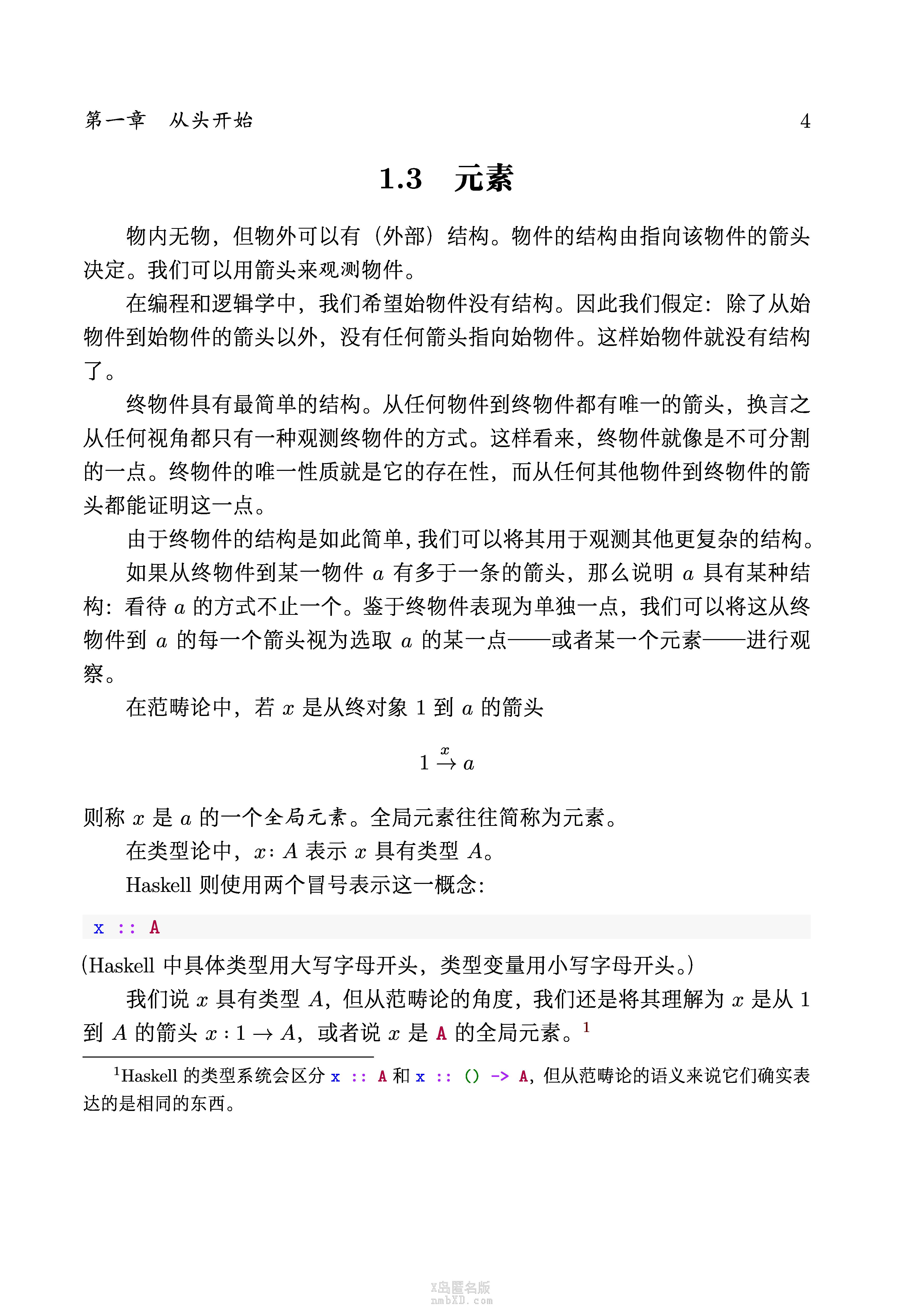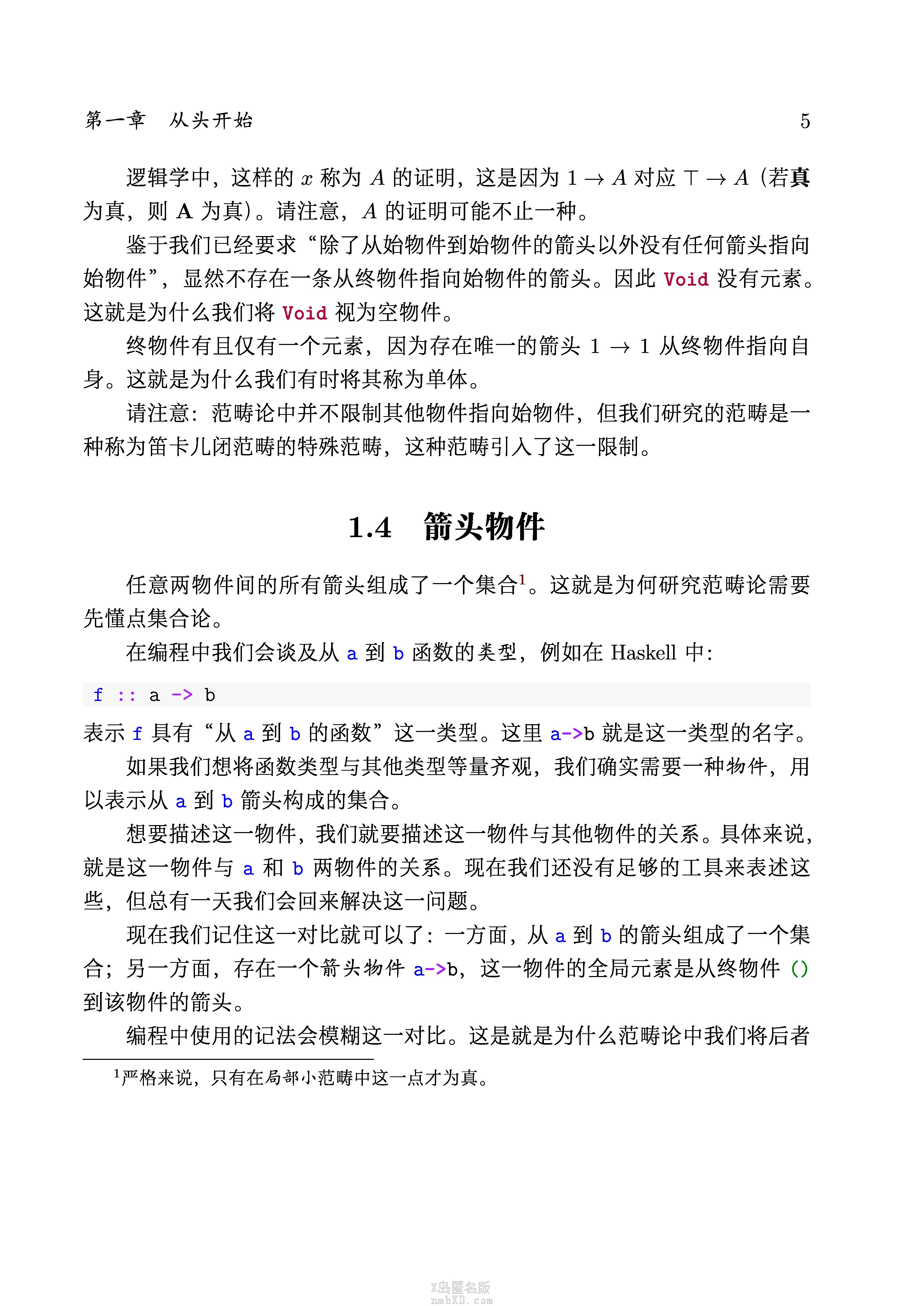 这个书实际上采用了一种完全不同于其他范畴论教科书的编排方法,并不是从抽象的范畴概念开始,而是从某一类非常具体的范畴(应该是叫局部小笛卡尔闭范畴)开始,逐渐建立一套能和Haskell接轨的类型系统(其实不能说建立,因为这个范畴就是那个类型系统)
