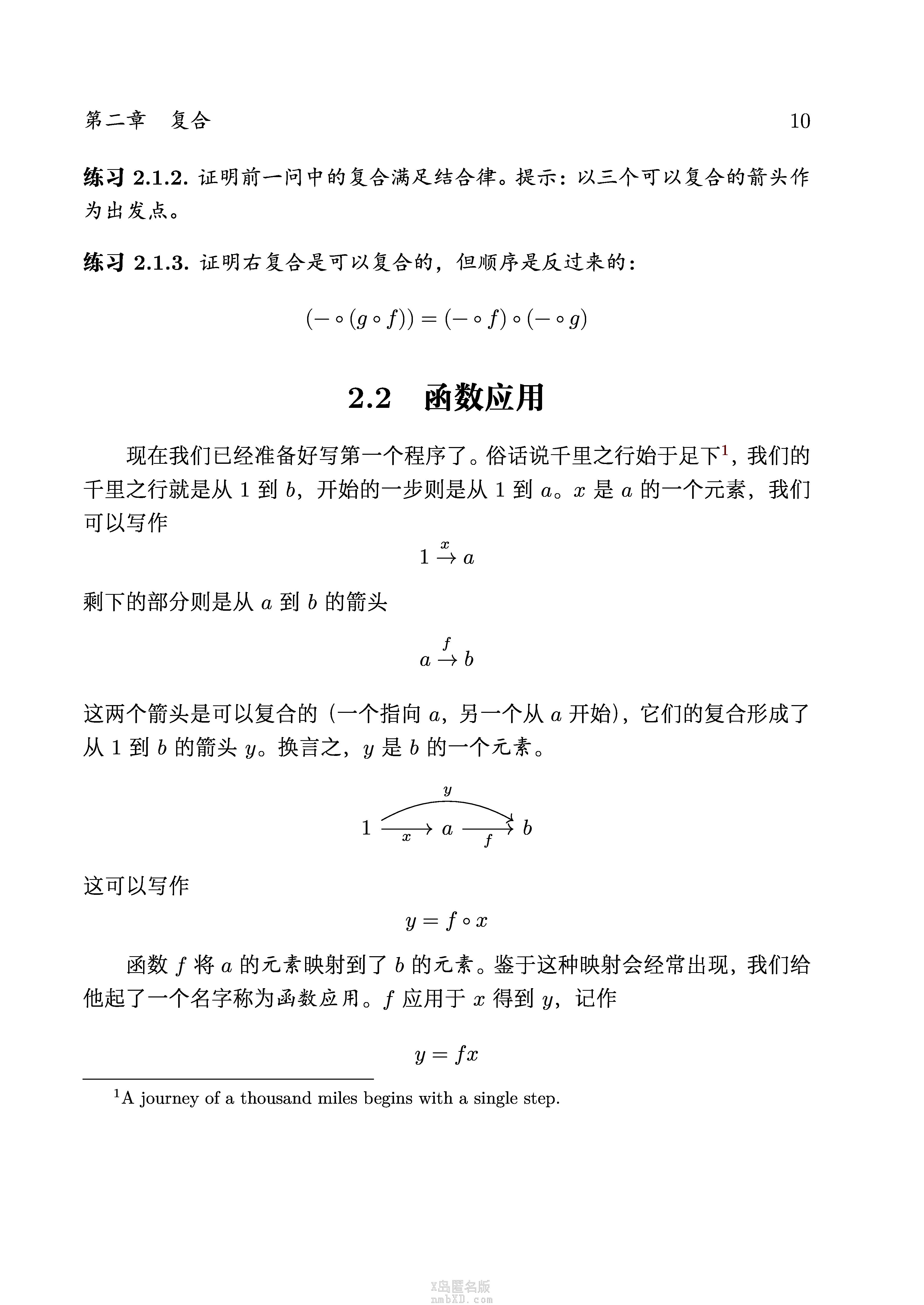 这种编排方式让我想起了高中学集合的时候,高中书是从“一个班里的同学”“若干个数”中逐步抽象出来集合的概念——类比各种范畴论书从群-同态、集合-映射中抽象出来范畴概念,将范畴放在了相当抽象的位置,对我来说这个曲线有点陡峭了;