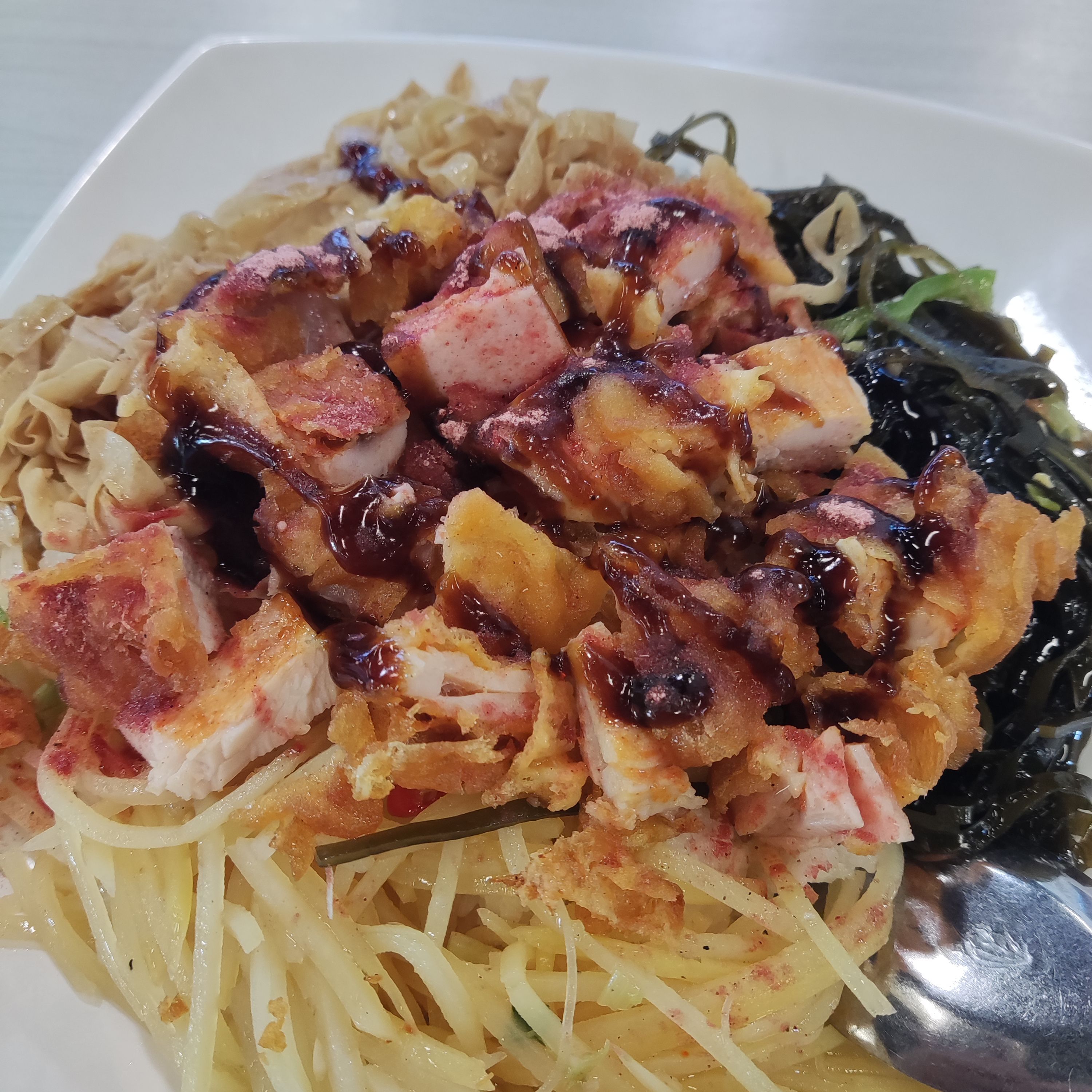 还挺对味的,酸酸甜甜冰冰凉凉的,面也很弹(ゝ∀・)红油不辣,很香,下次还来