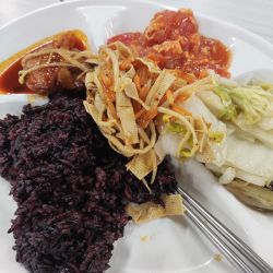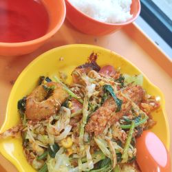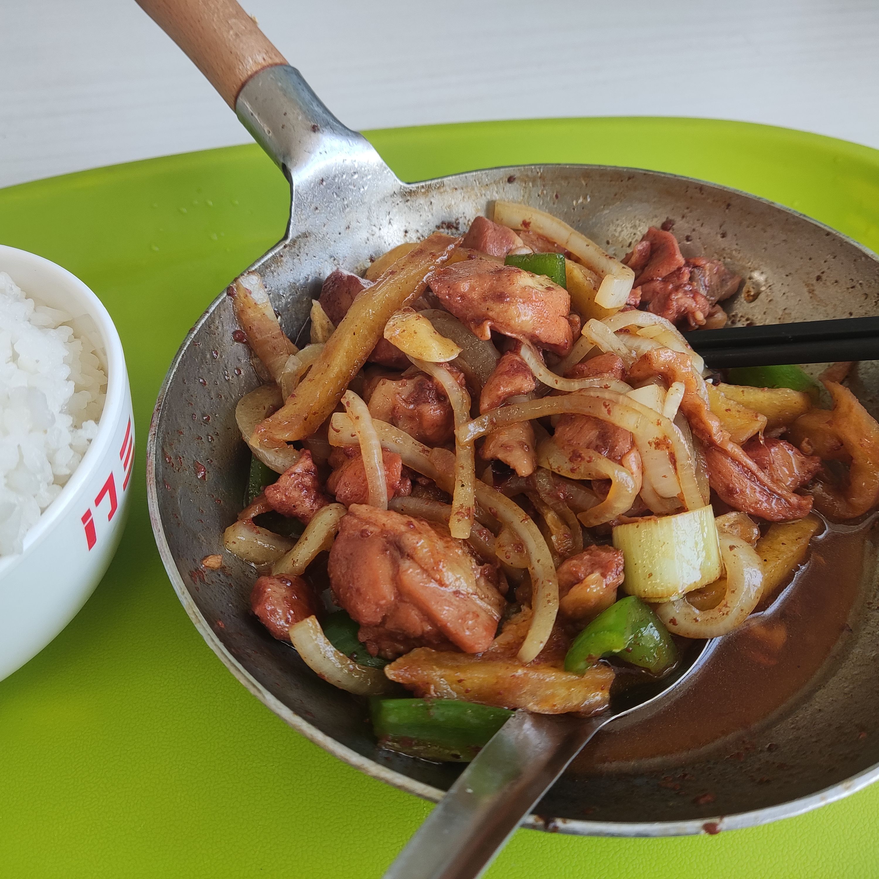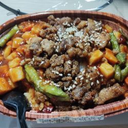还可以,甜咸口,配菜味道像加了黄豆酱的地三鲜,有点辣