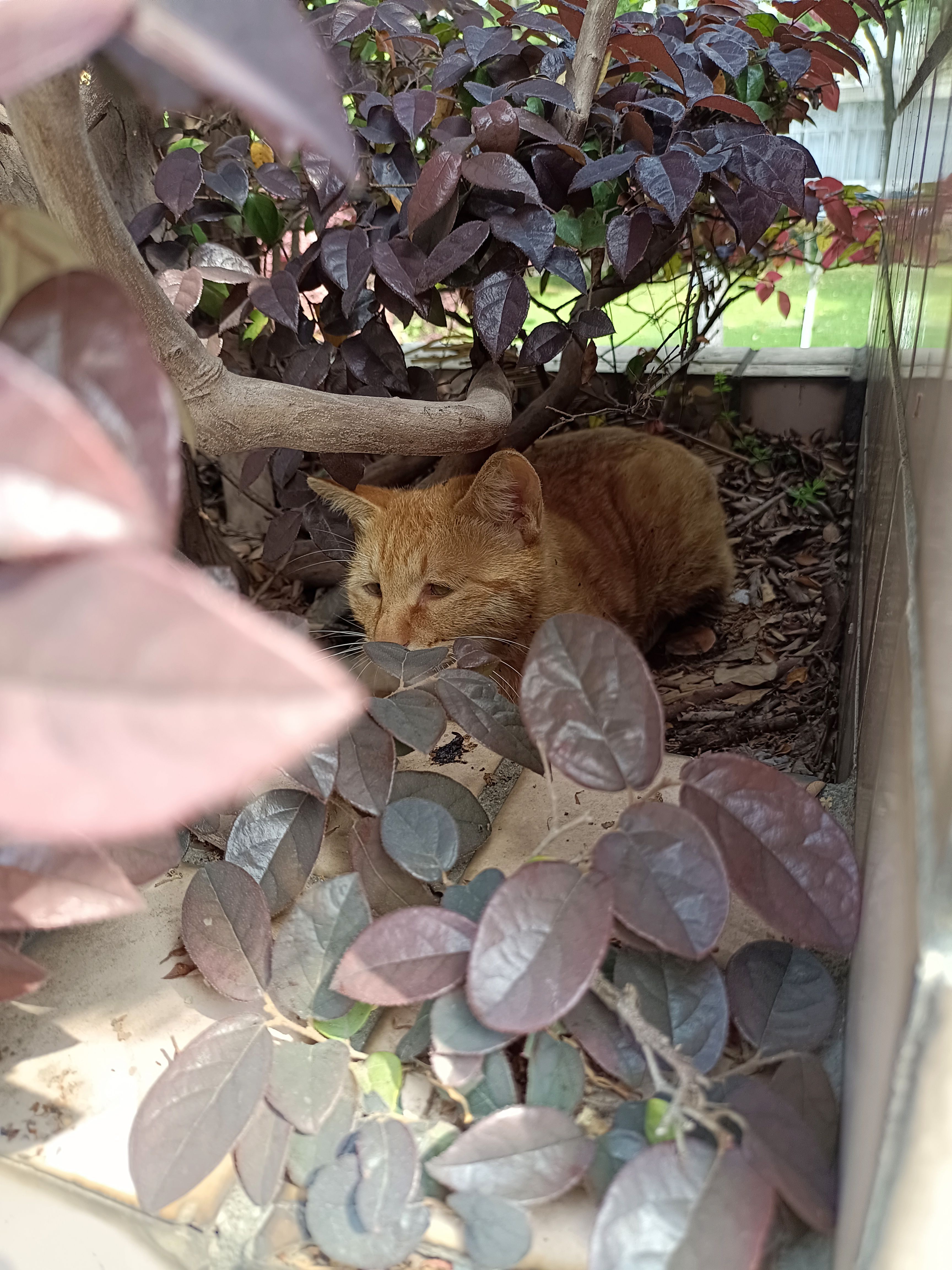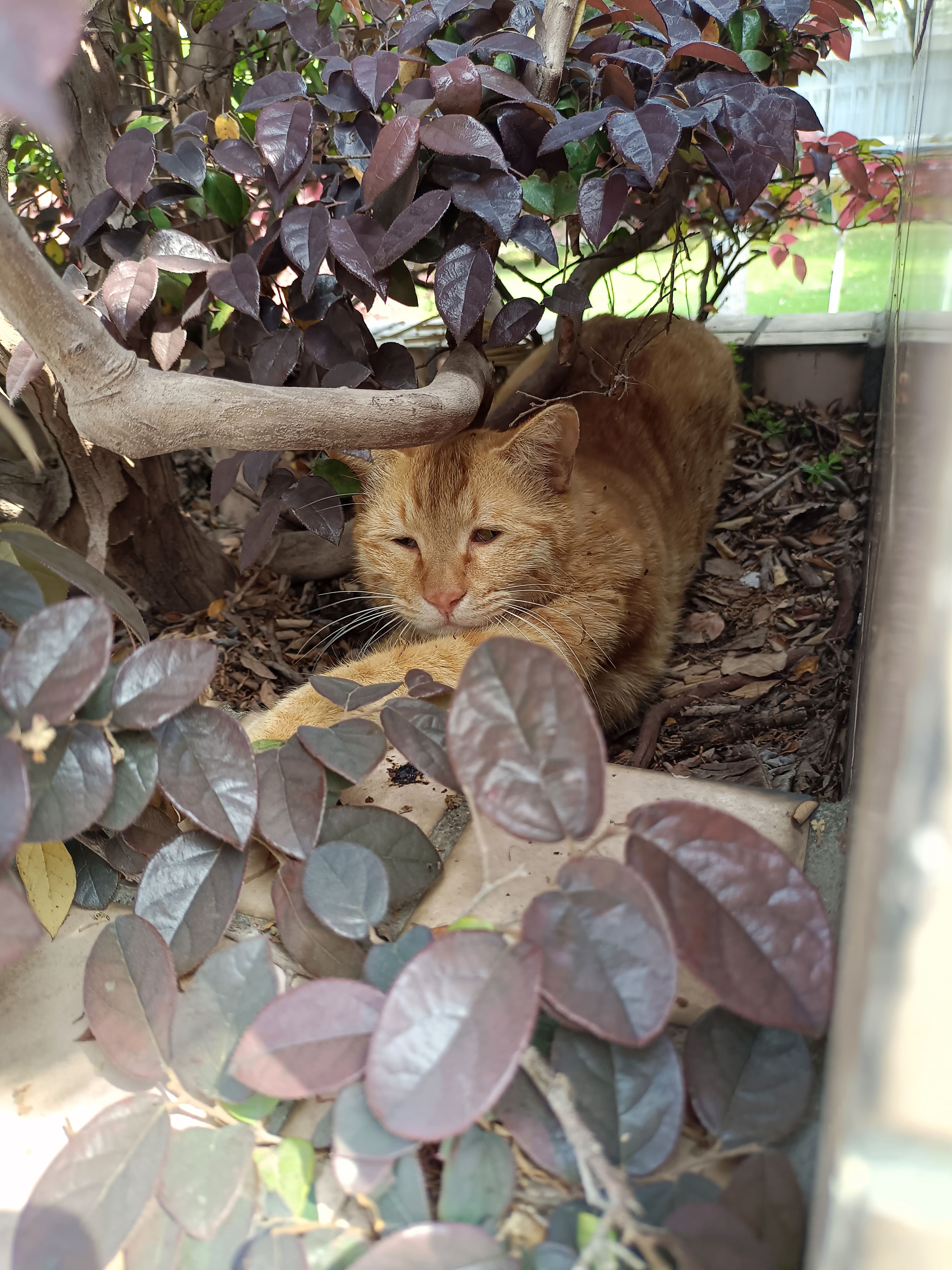 往花坛里一瞅,台台果然在睡觉