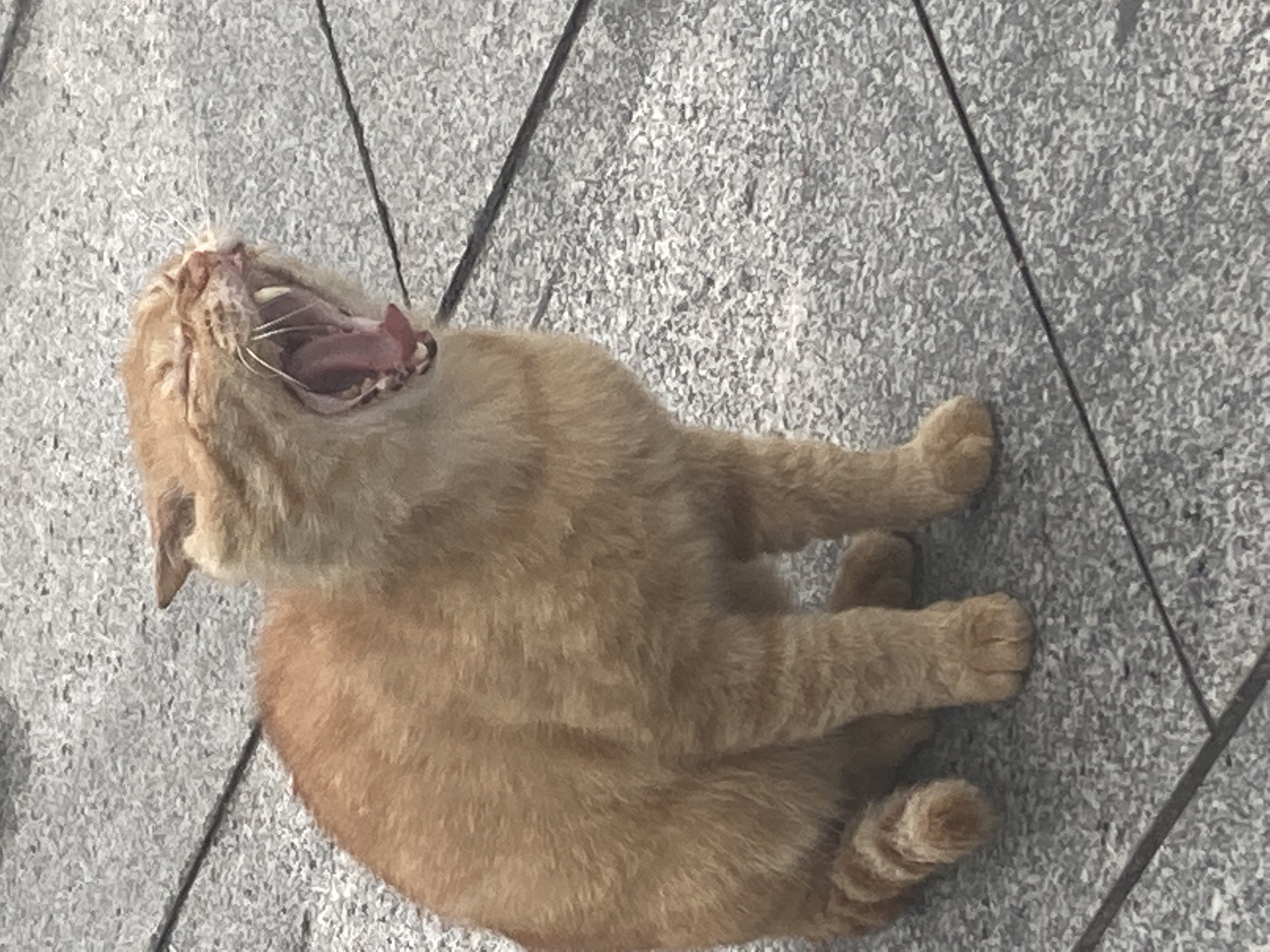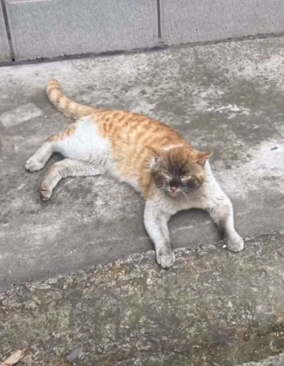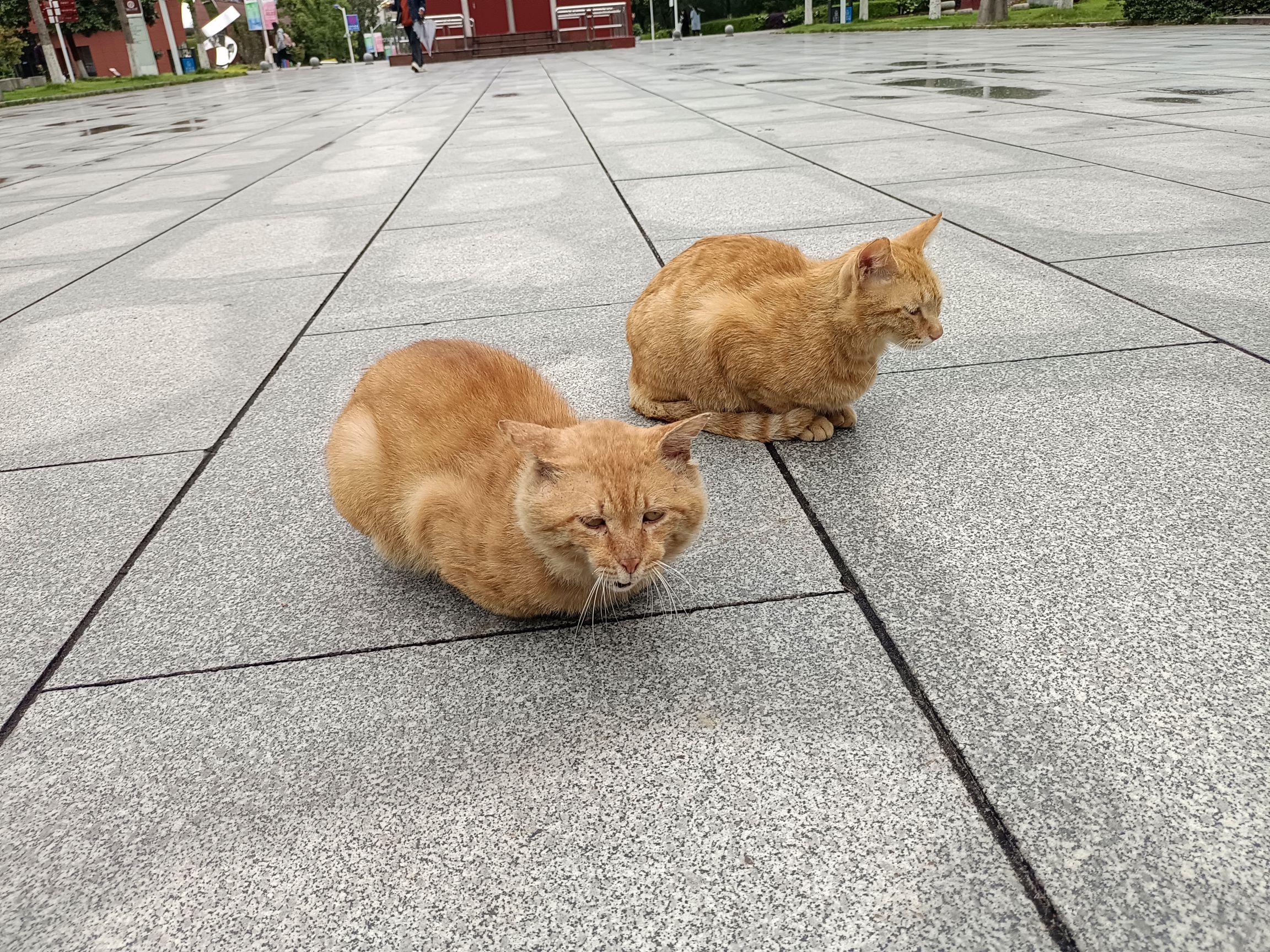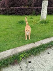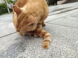 今天中午我正蹲着摸摸大橘呢,没想到台台在我后面舔毛,结果我站起来后退的时候不小心踢到台台了( ;´д`)