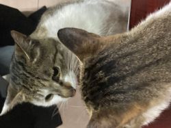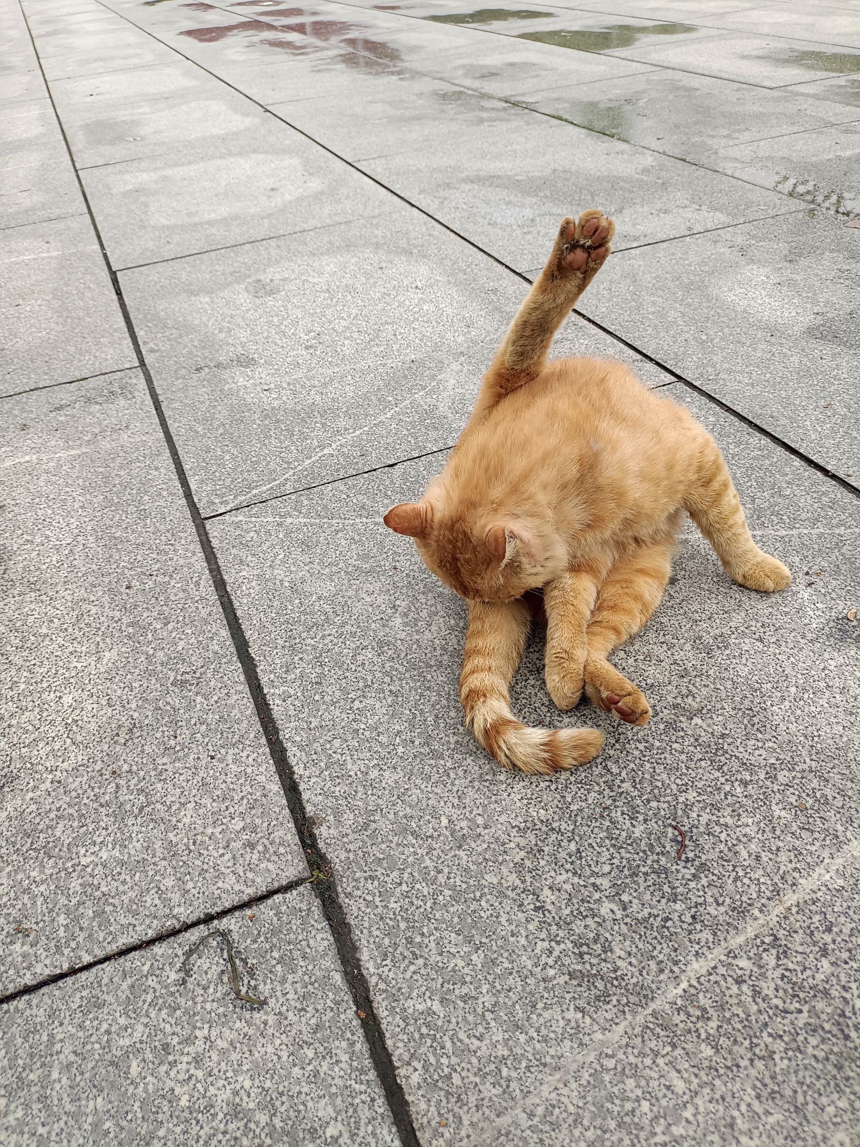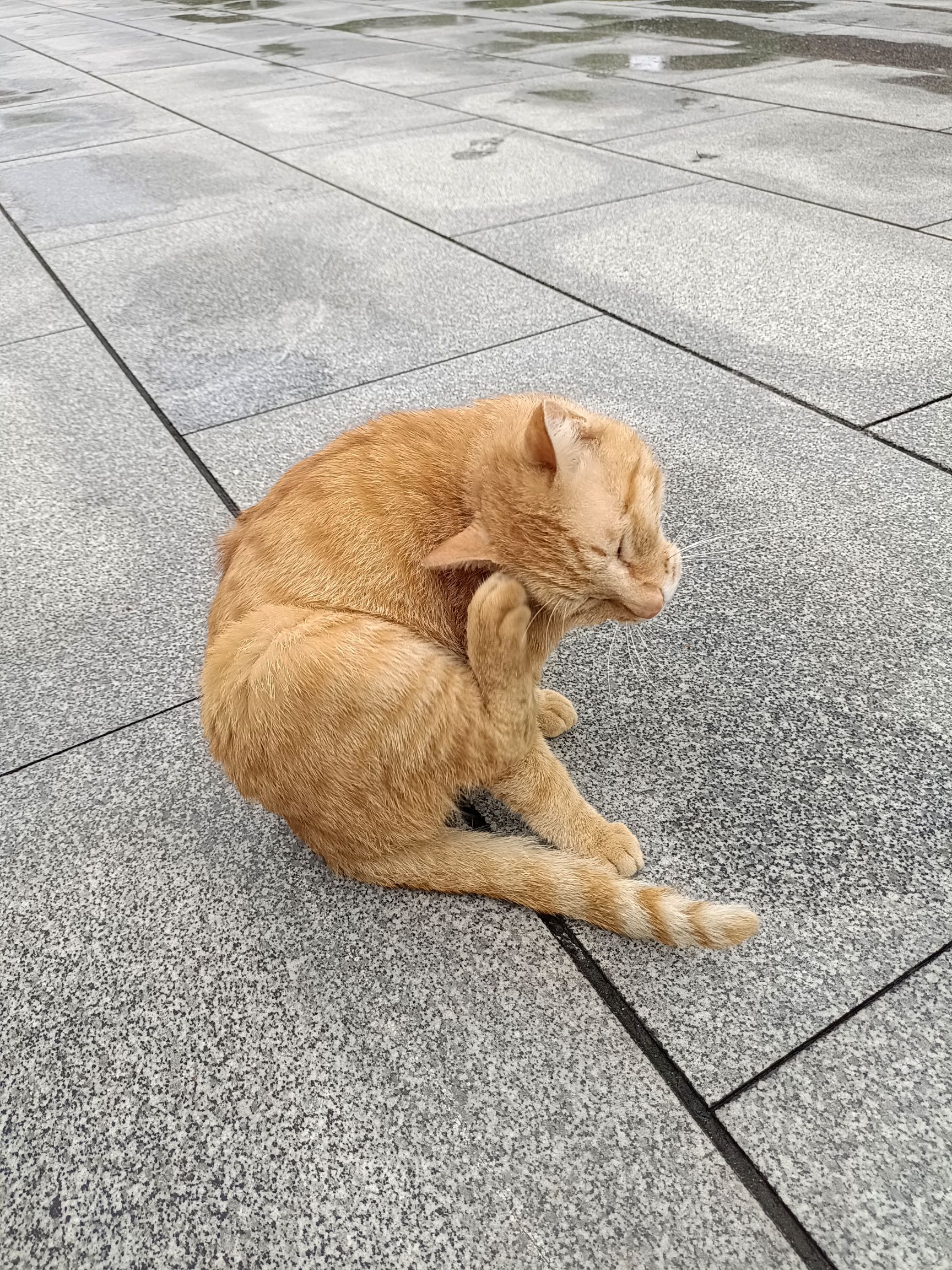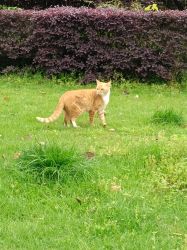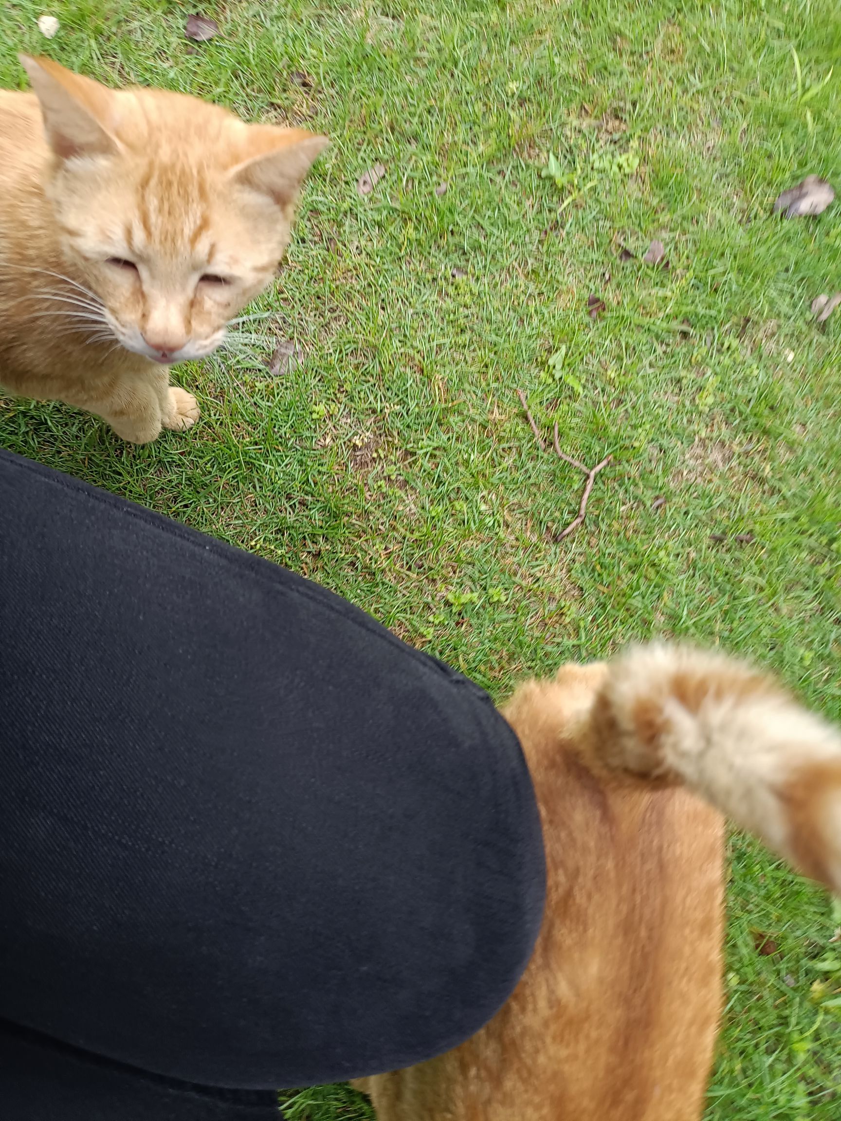 今天中午我正蹲着摸摸大橘呢,没想到台台在我后面舔毛,结果我站起来后退的时候不小心踢到台台了( ;´д`)