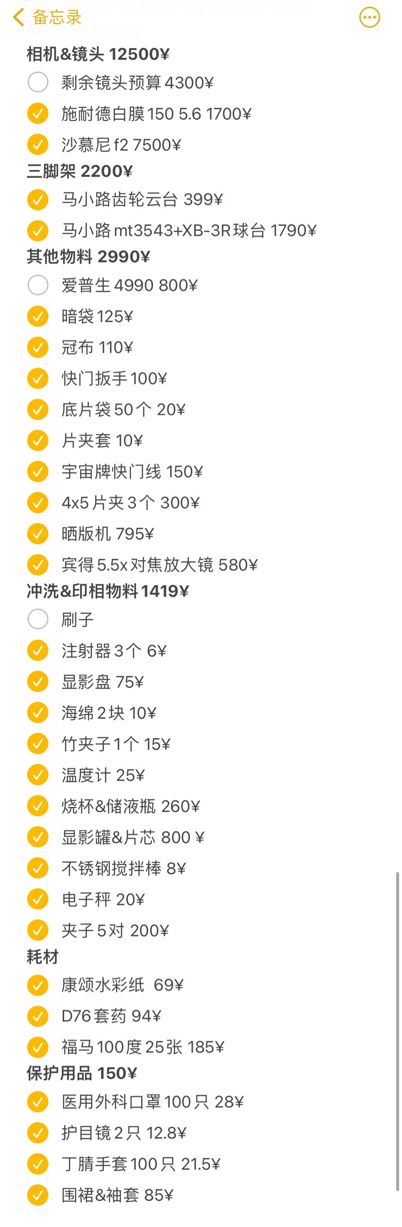 小肥粗略算了一下一套大画幅系统的成本,因为我还想玩古典印相,所以物料多买了一些